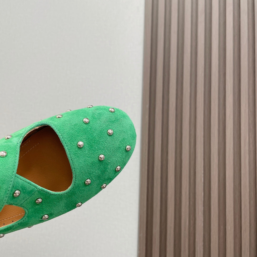 Alaia 2025 Criss Cross With Stud Ballet Flats Shamrock Green Suede 293210