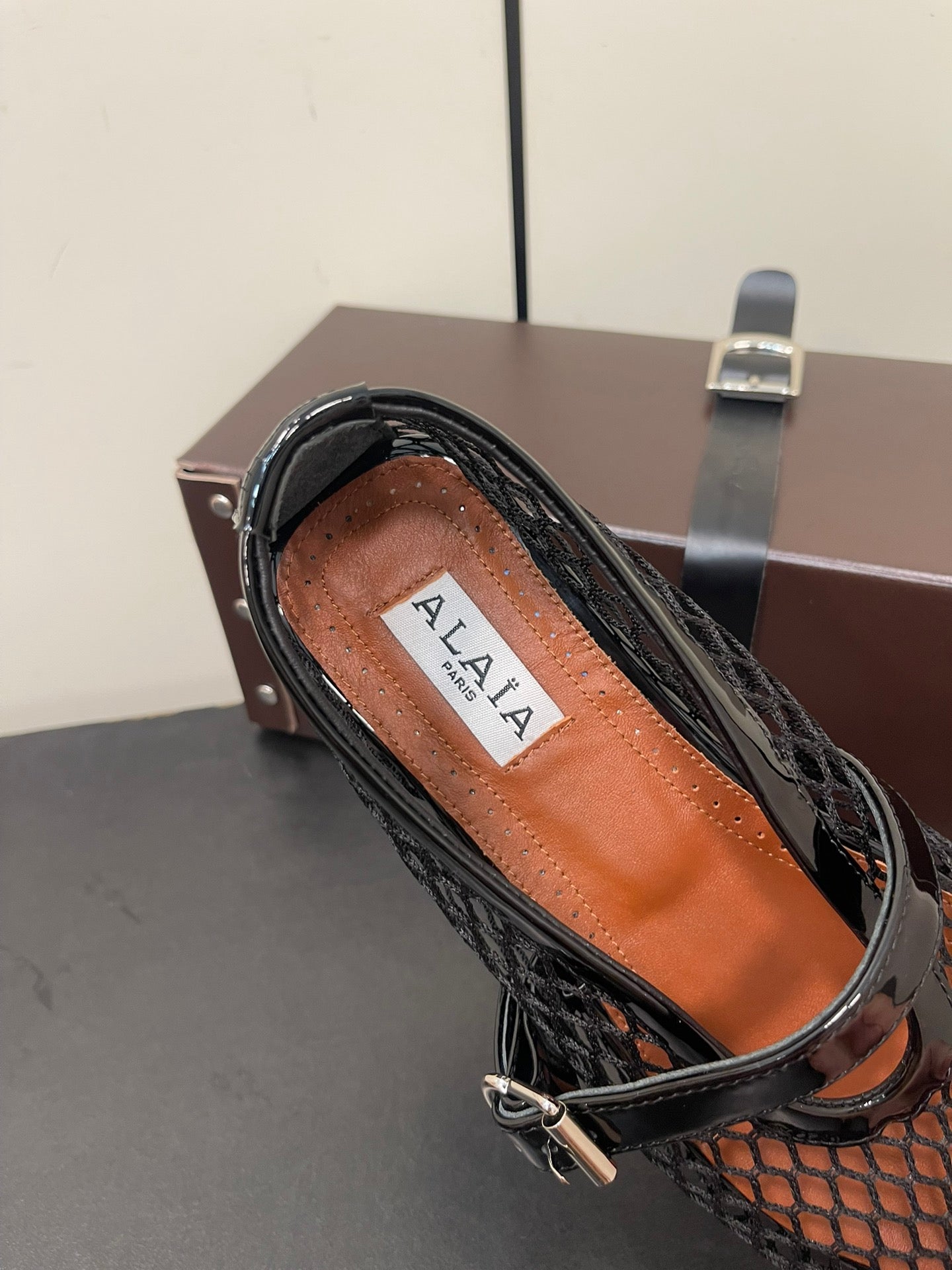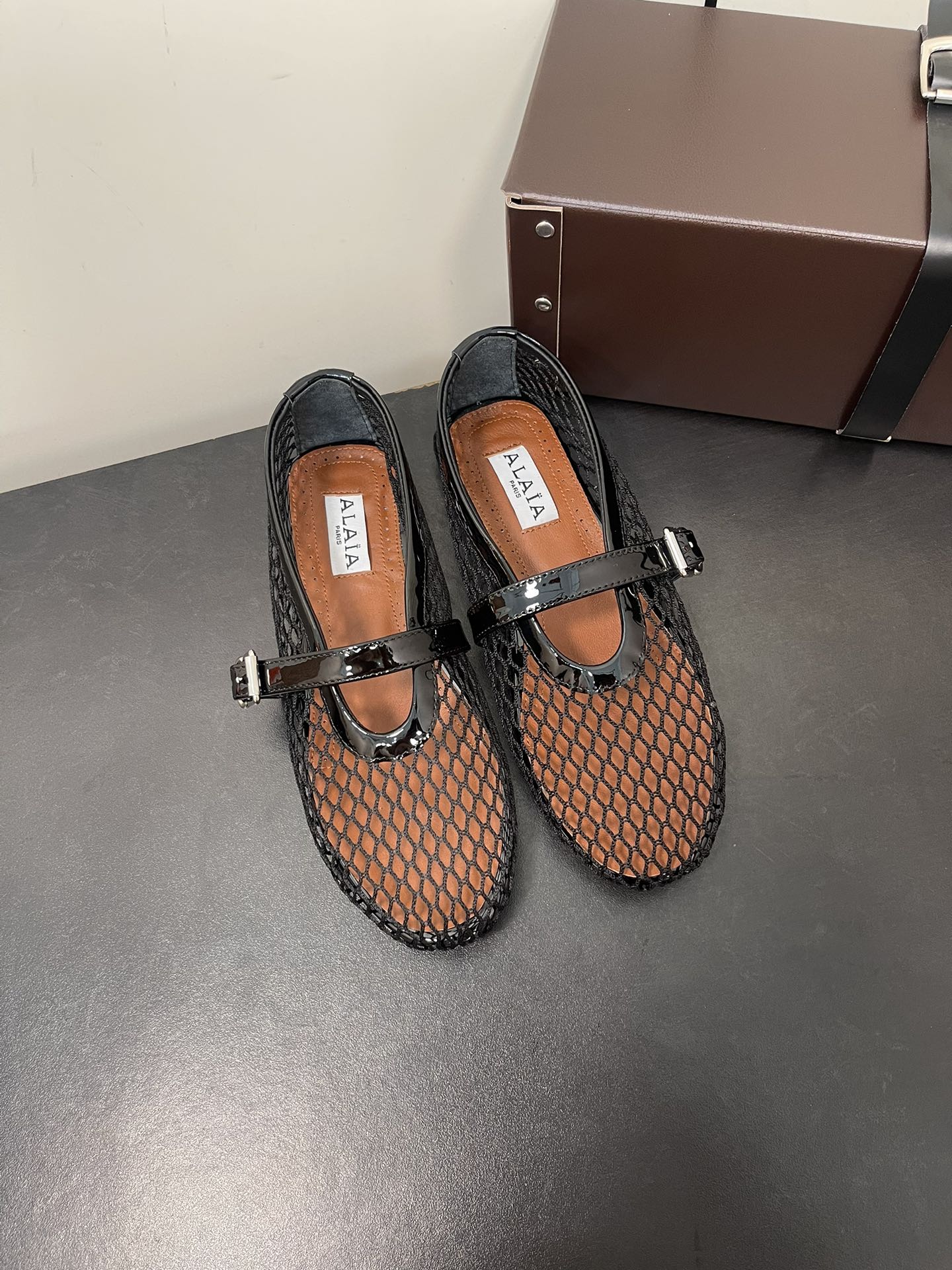 ALAIA BALLET FLATS IN BLACK MESH FISHNET