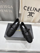 ALAIA MARY JANE FLATS black woven calfskin pattent
