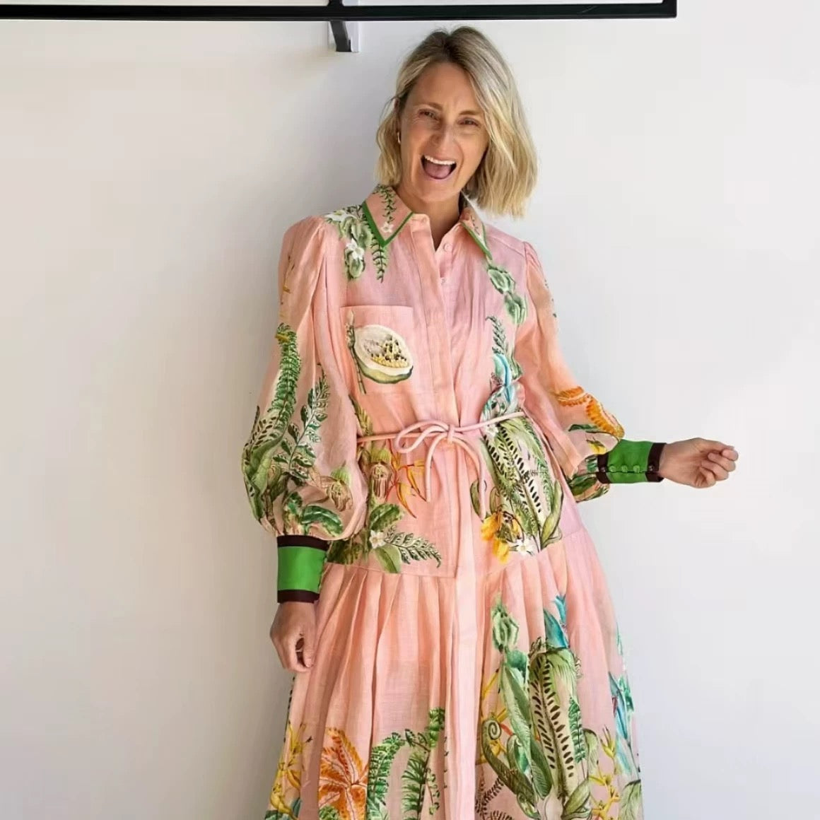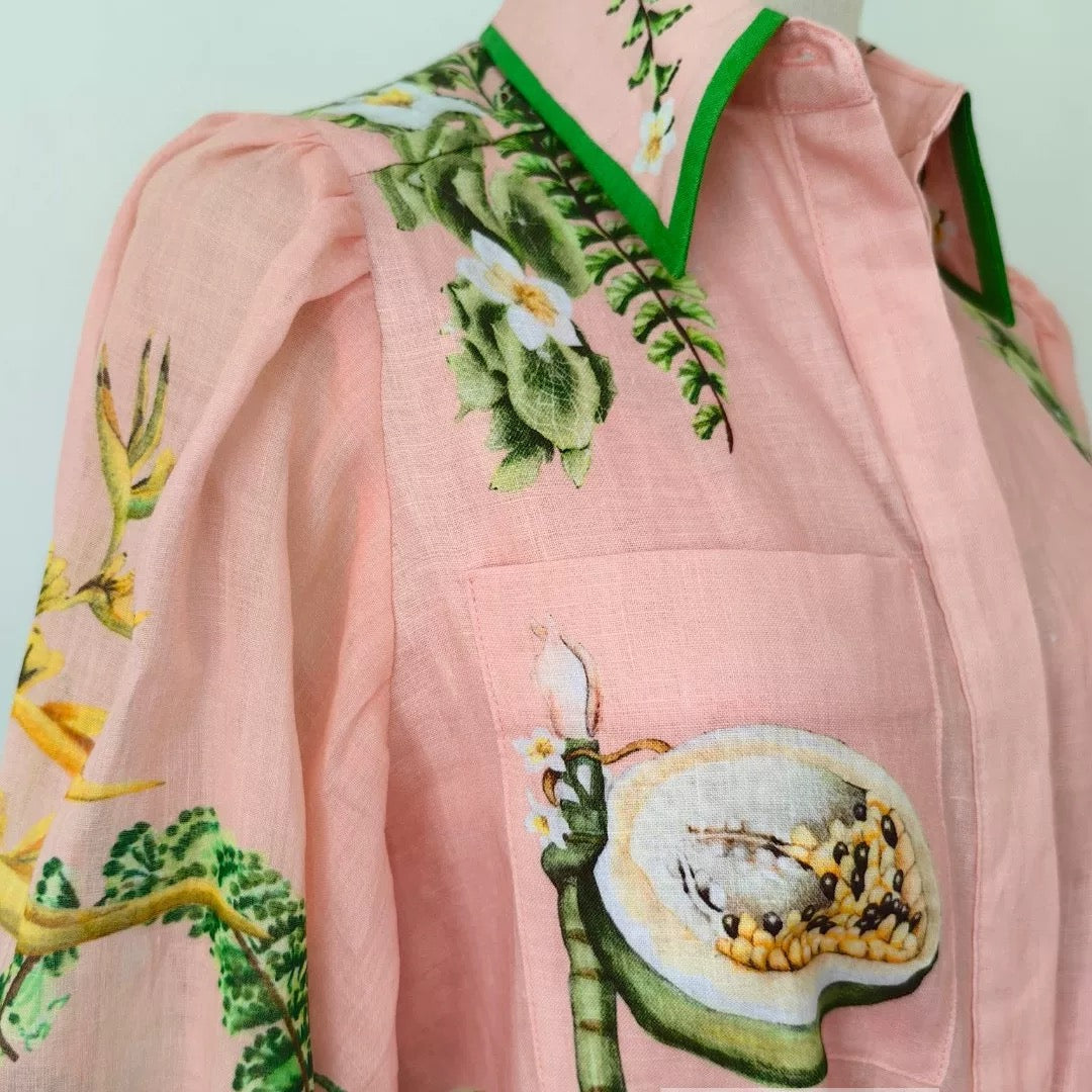 ALEMAIS Papaya Shirt Dress Pink Linen