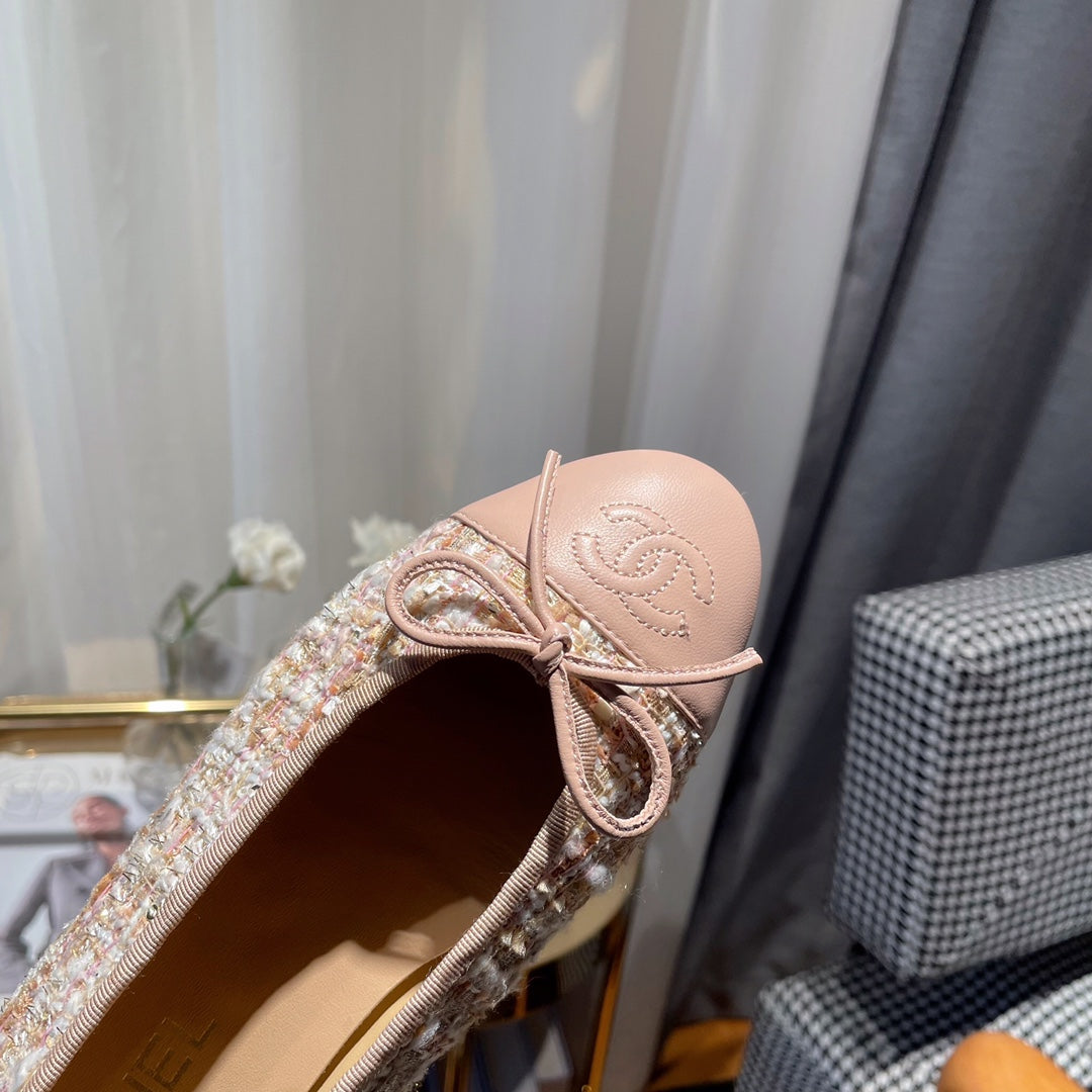 ballet flat pink white tweed pink calfskin
