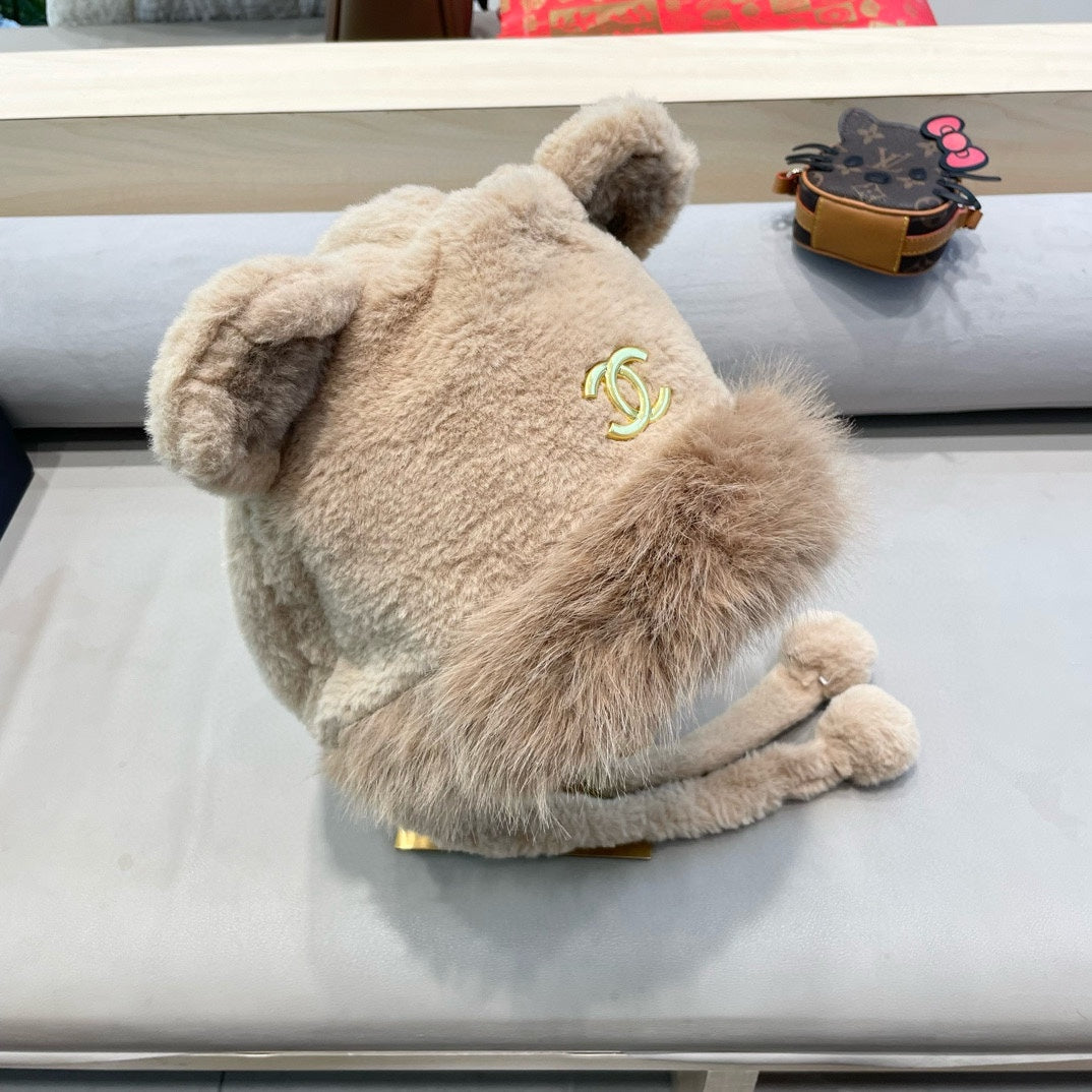 BEANIE HAT IN CAMEL BROWN LAMB FUR 426238