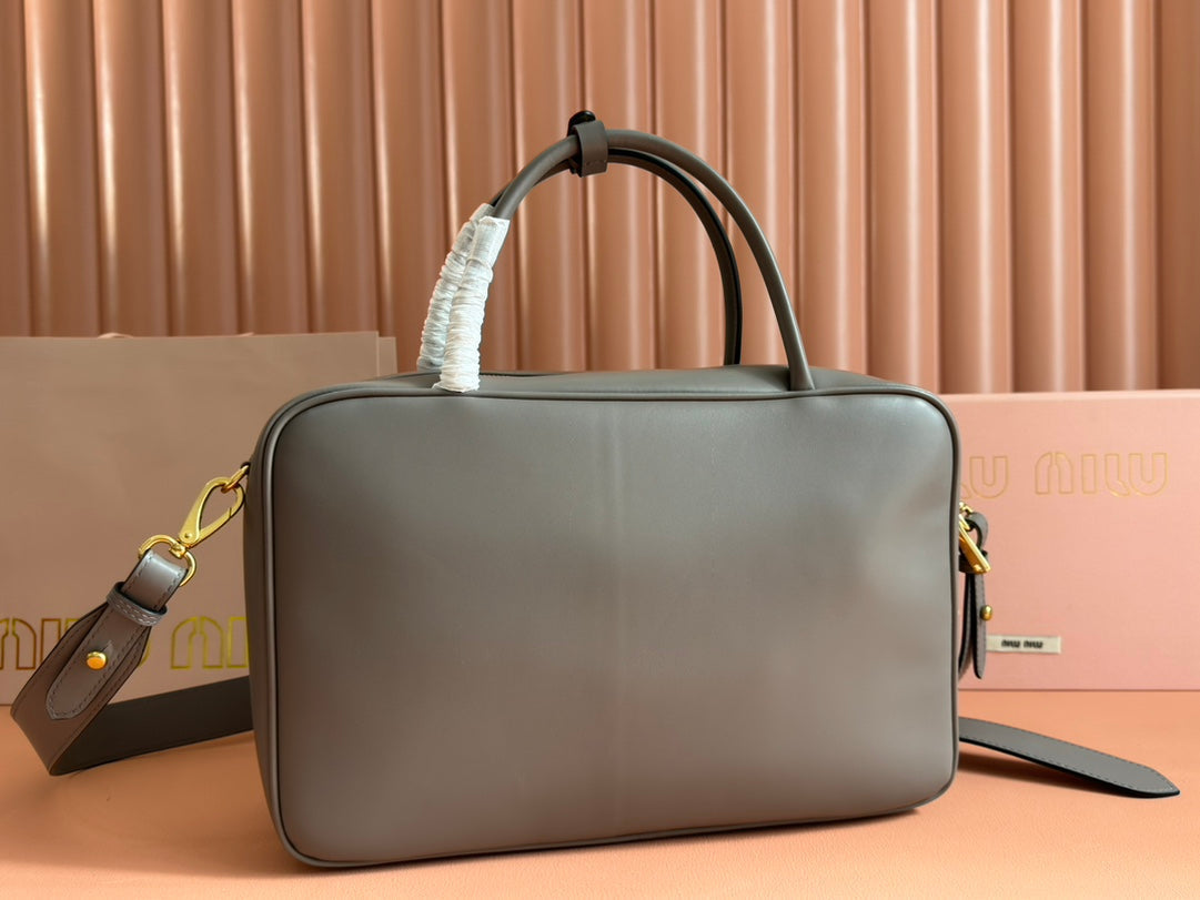 BEAU TOP HANDLE BAG 34 IN DARK GREY SMOOTH CALFSKIN