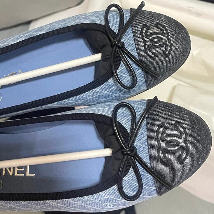 CC 25 Ballet Flat Blue Denim White Quilted