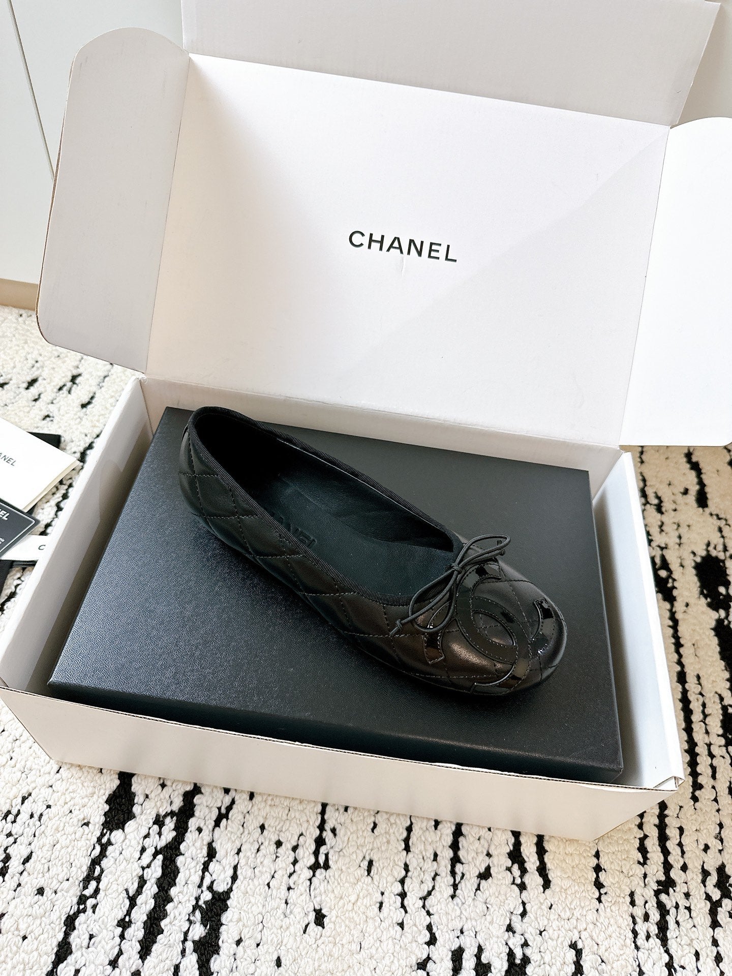 CC 25 Kangpeng Ballet Flats Black Leather 300172