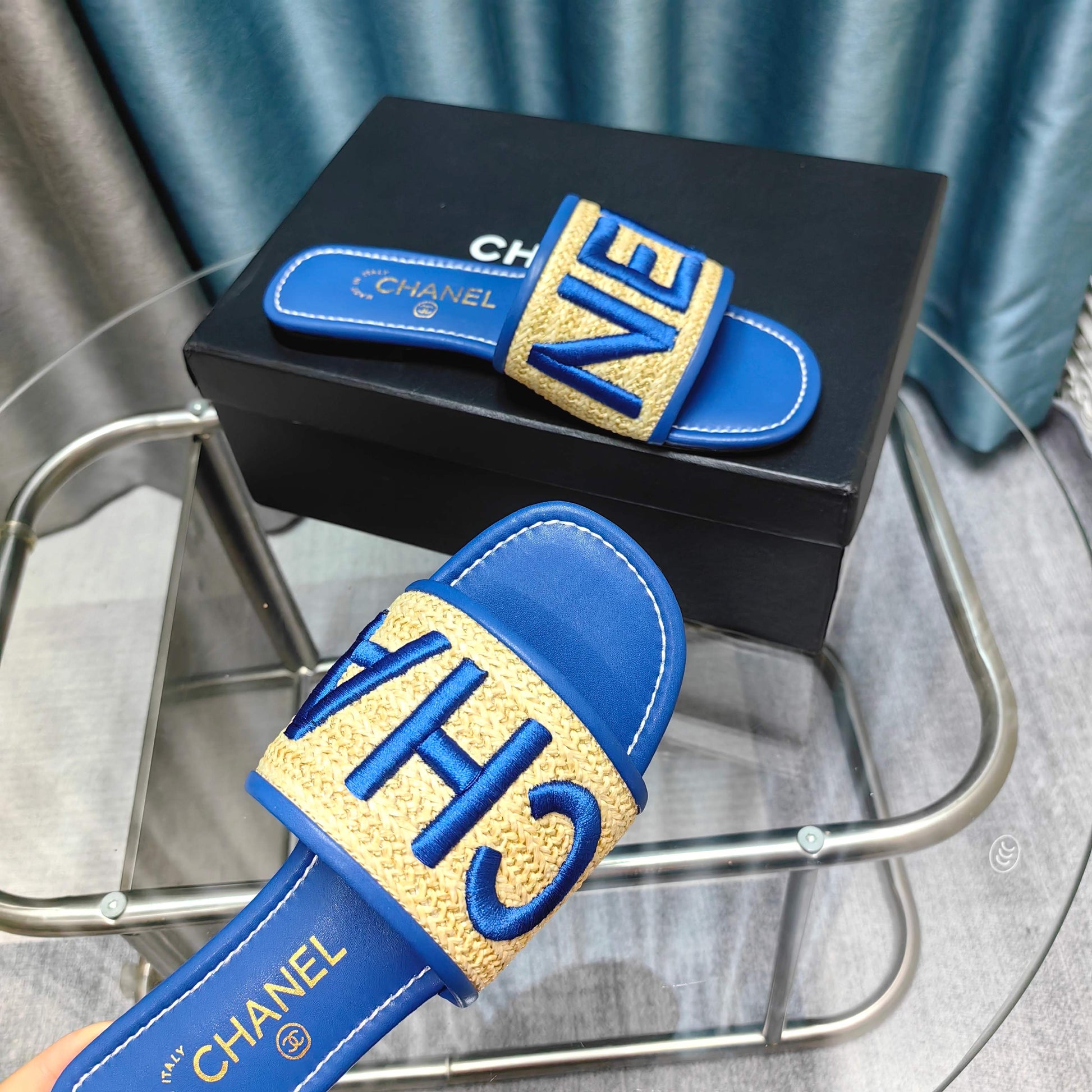 CC 25 Mule Raffia Large Logo