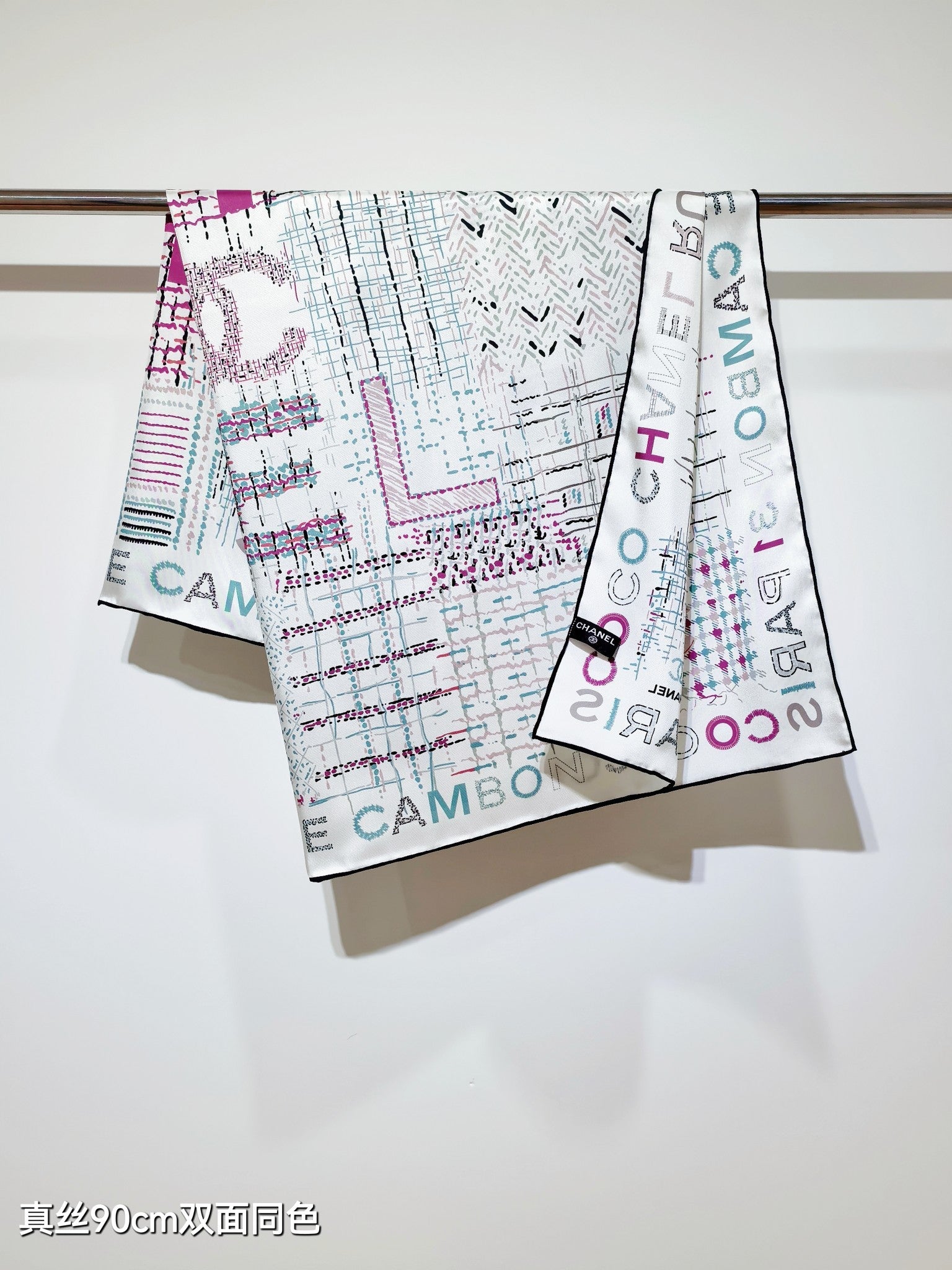 CC 25 Scarf 90CM In White Purple Colorful Cashmere 293047