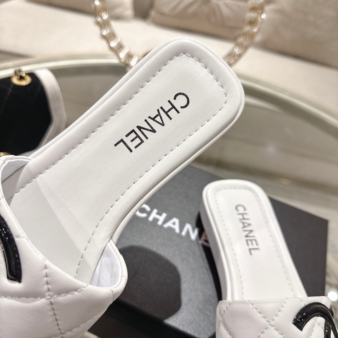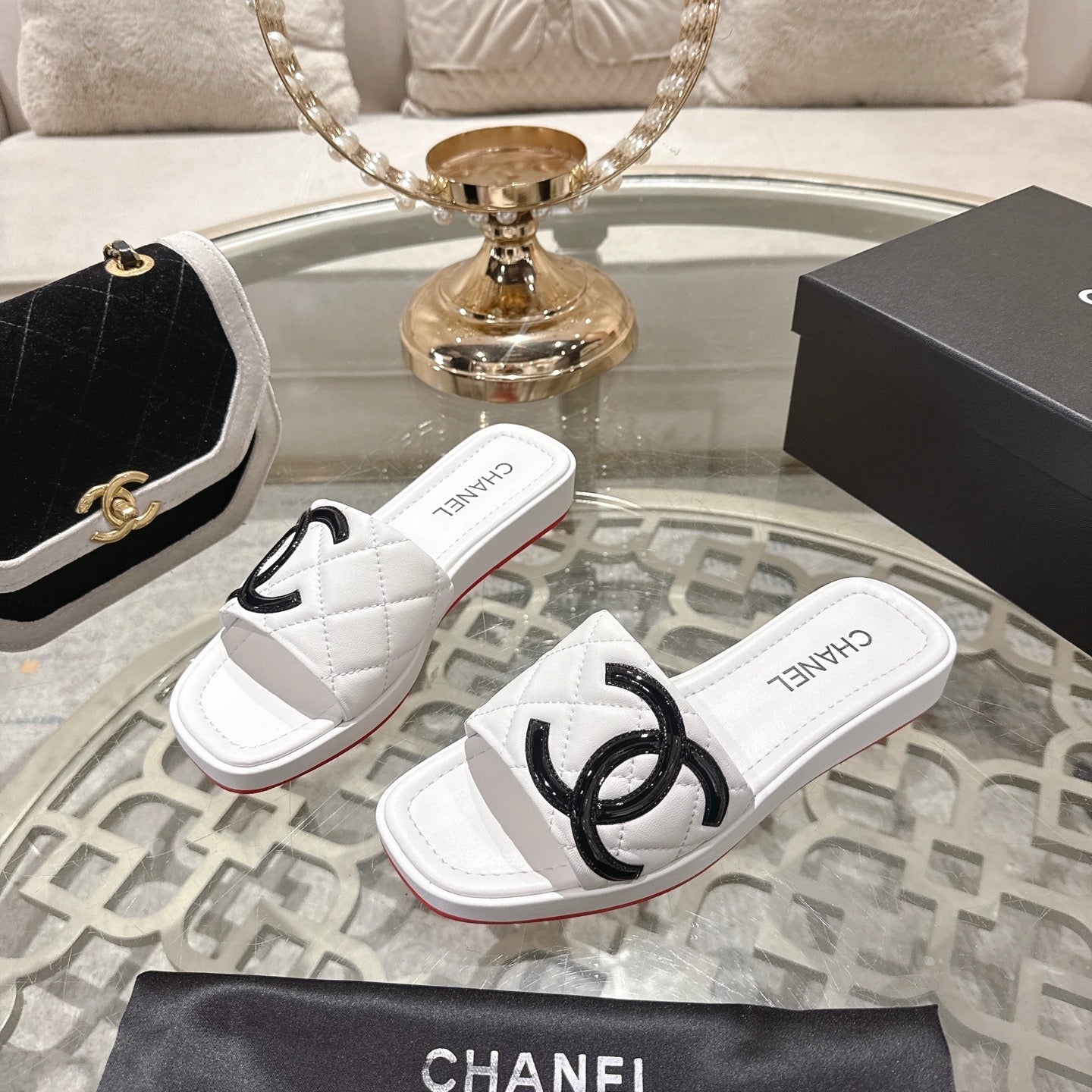 CC 26s Platform Slippers White Black Sheepskin 627073