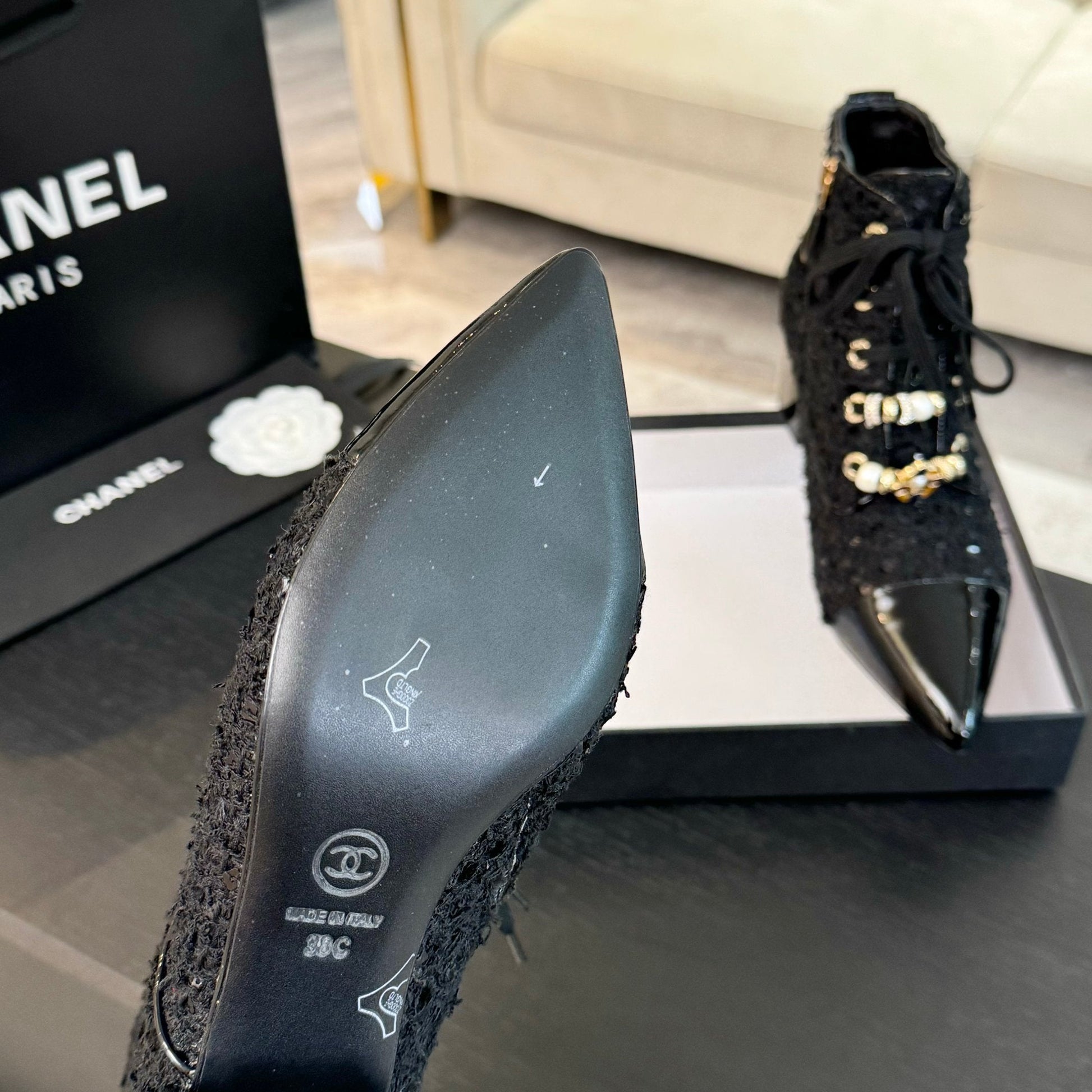 CC Ankle Boots Black Beaded Tweed Fabric And Lambskin