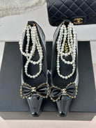 CC High Heels 80mm Grey Black Bow Quilted Calfskin