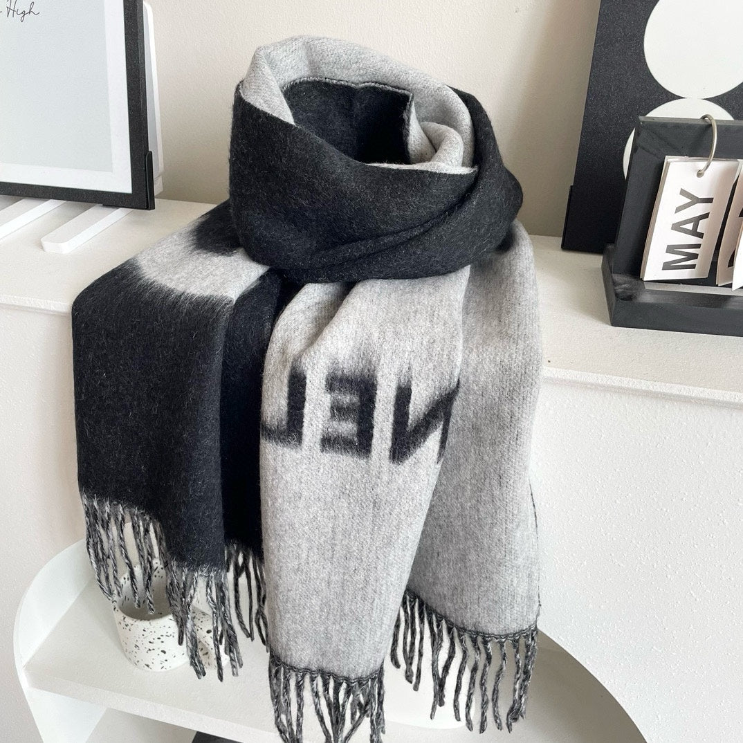 CC Long Scarf 200 CM In BLack Mix White Cashmere 425111