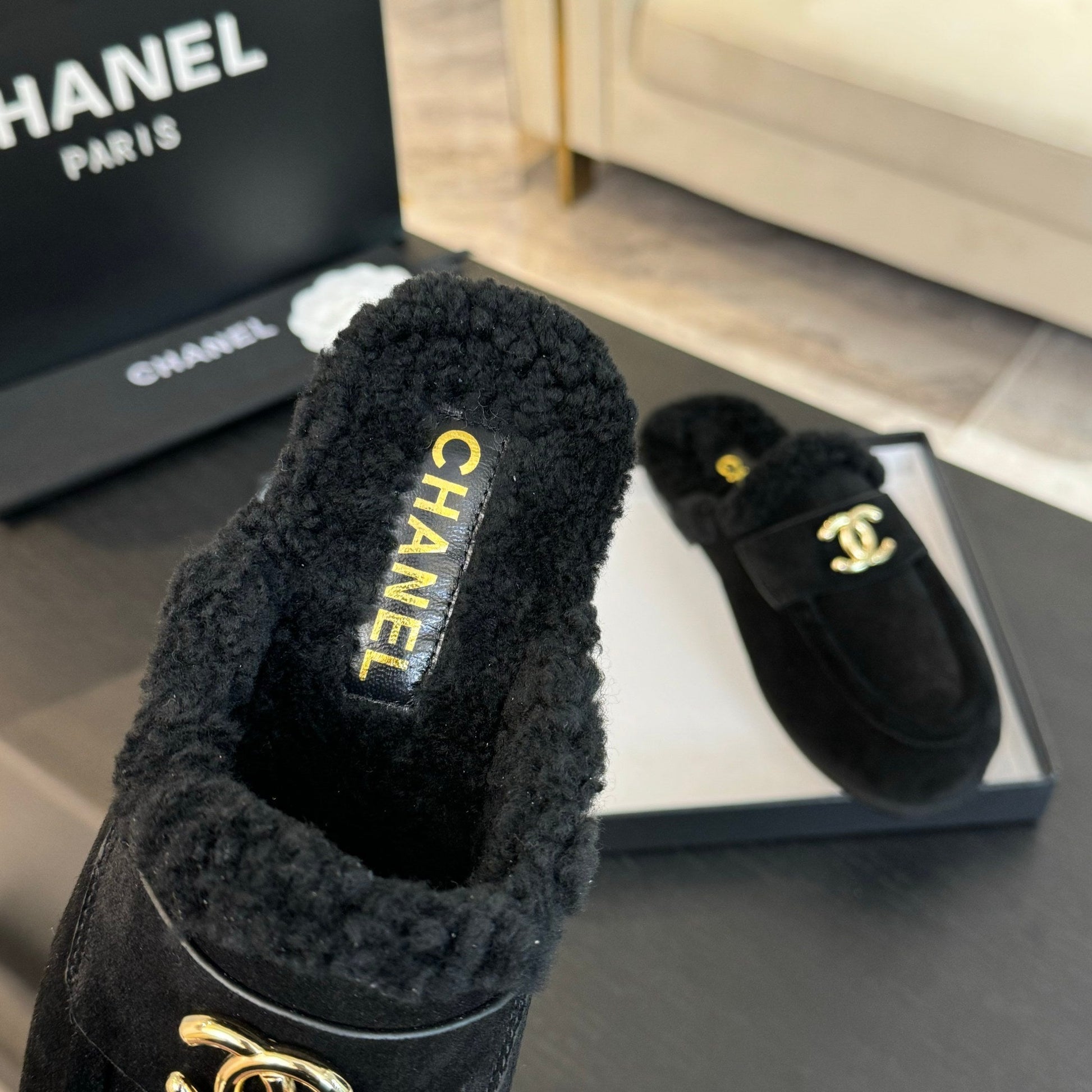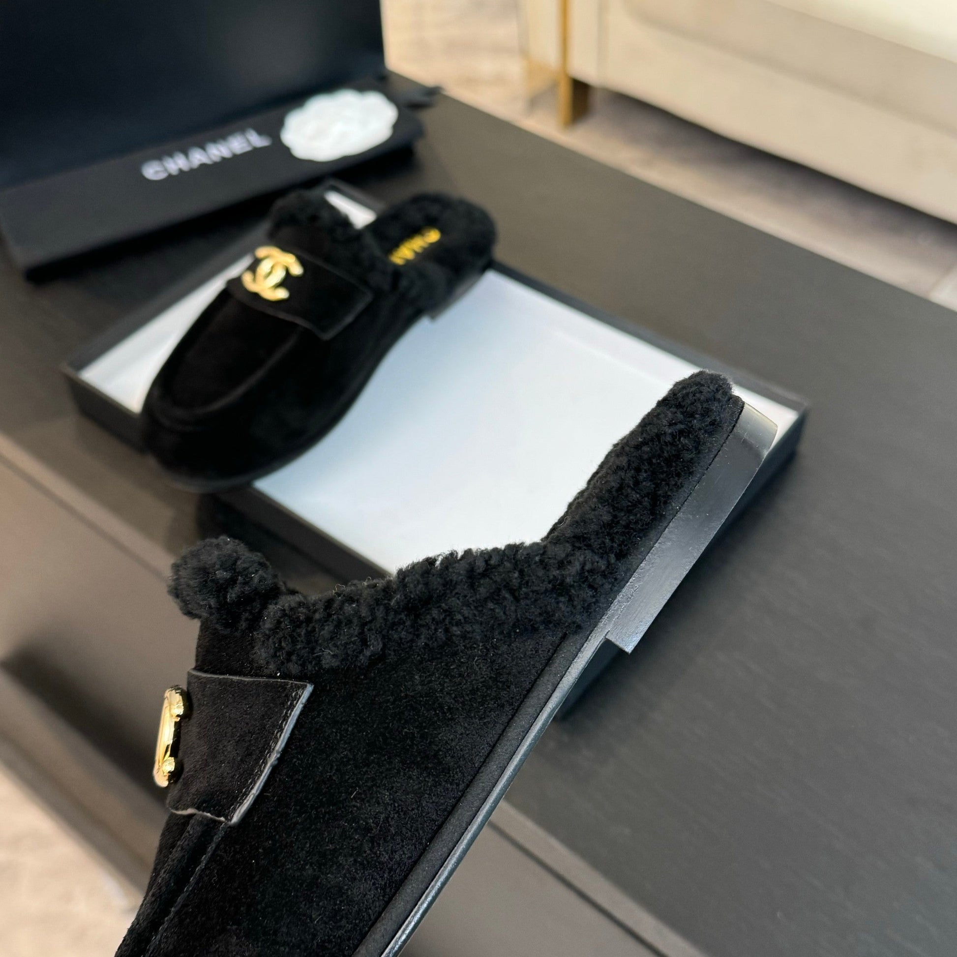 CC Mule Black Suede Lamb Wool