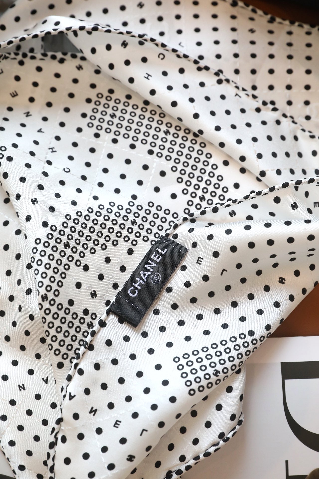 CC Scarf 110 CM In White Black Polka Dot Silk 348706