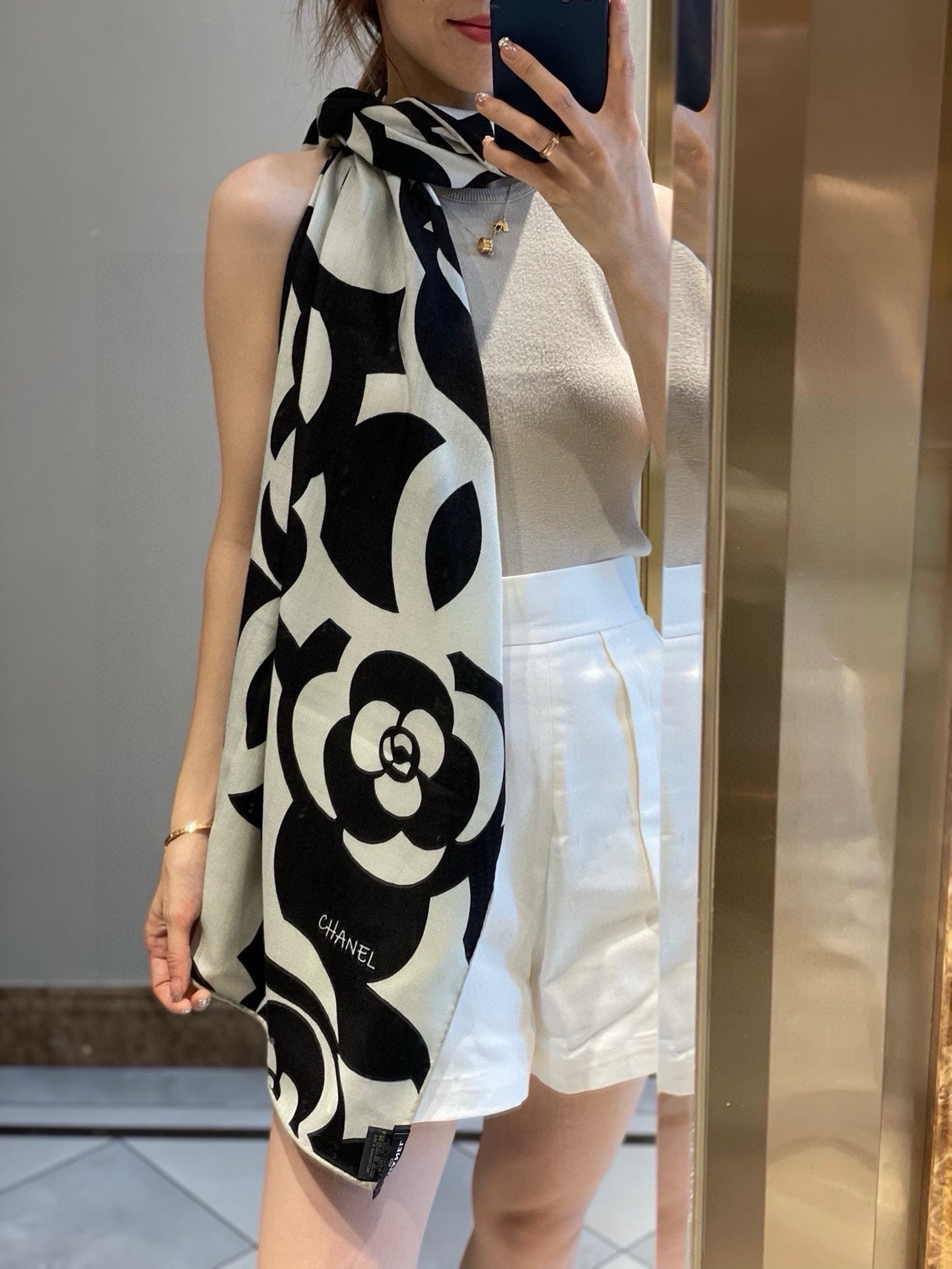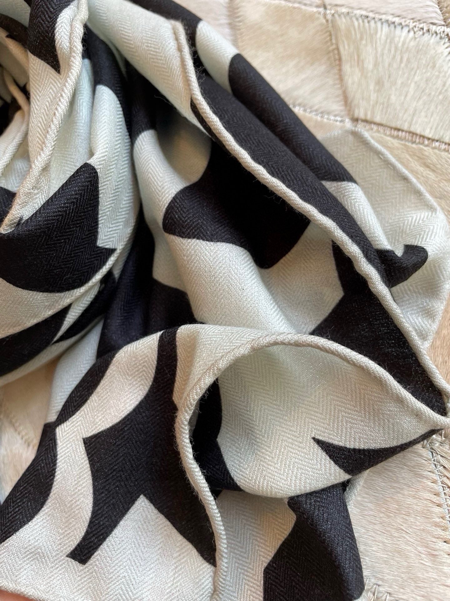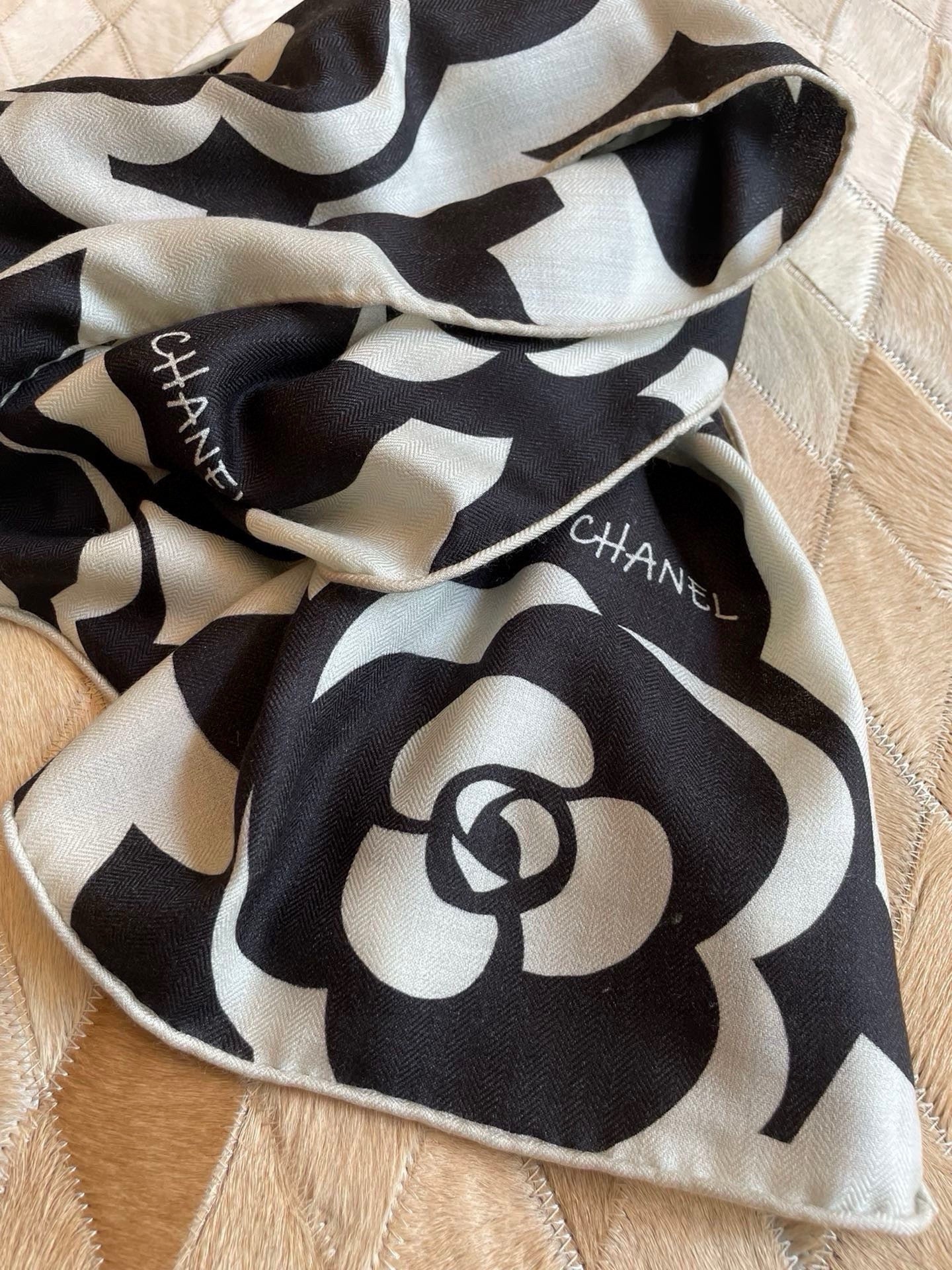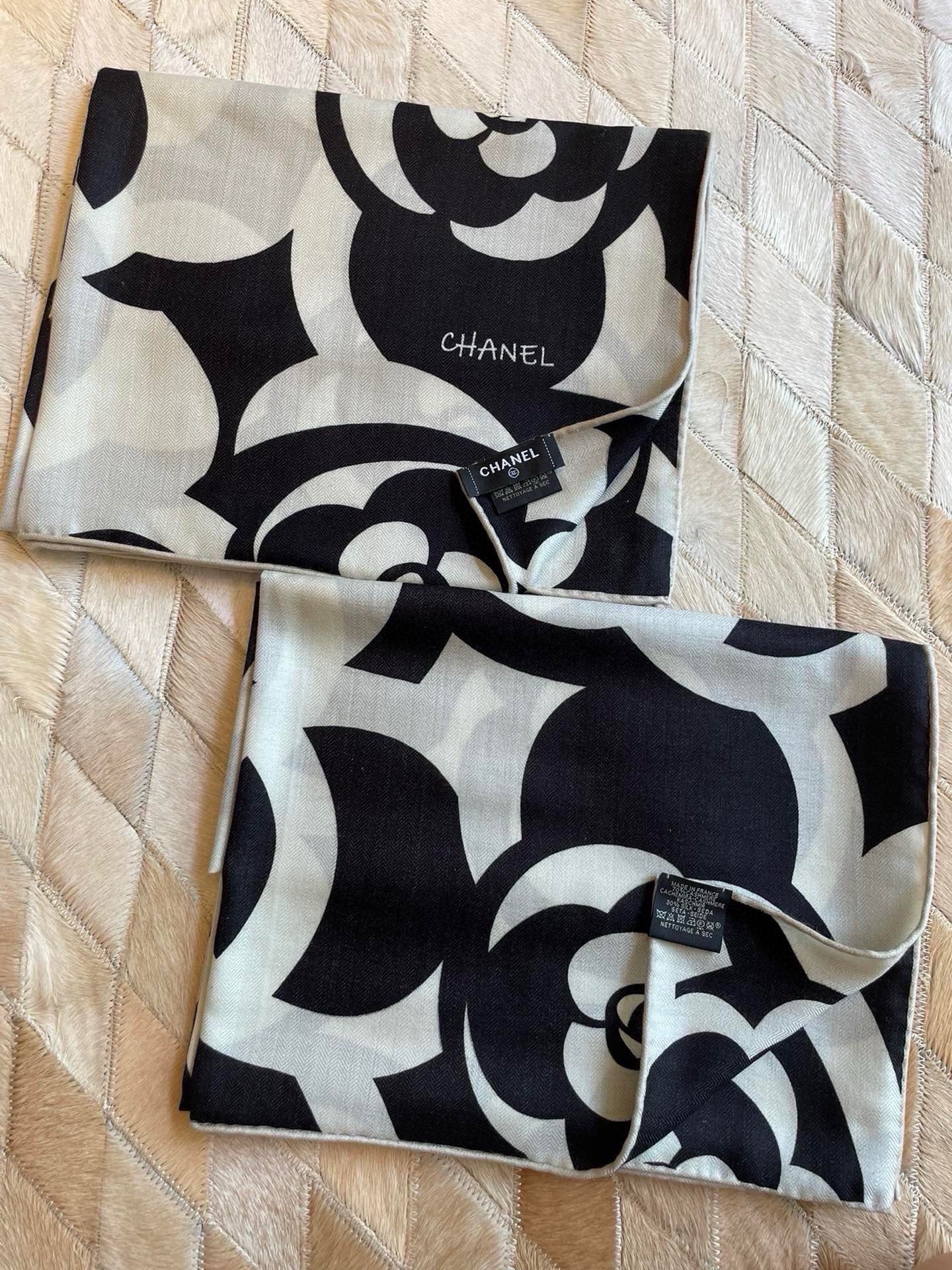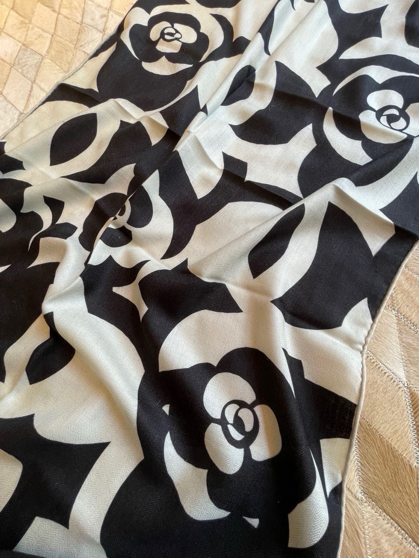 CC Scarf 190 CM In Black And White Floral Print Cashmere Silk 208542