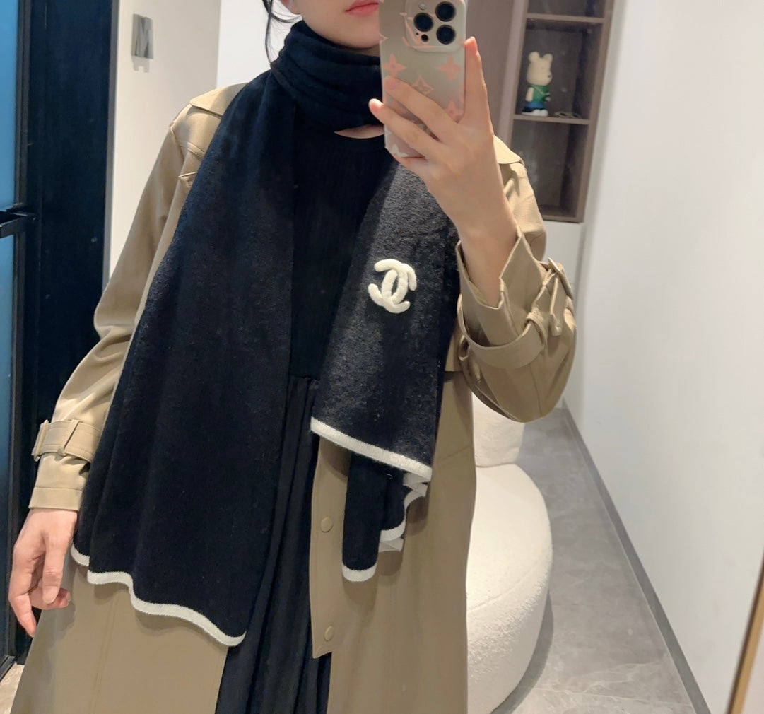 CC Scarf 200 CM In Black Wool Cashmere 401978
