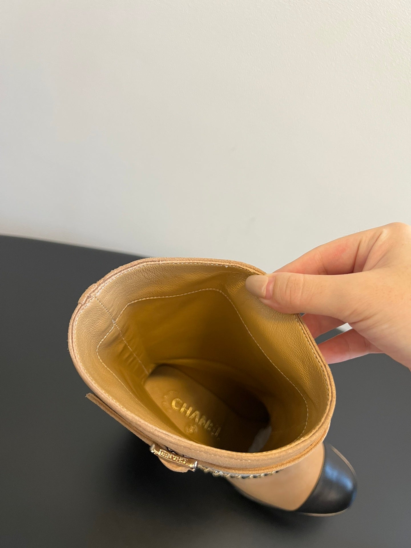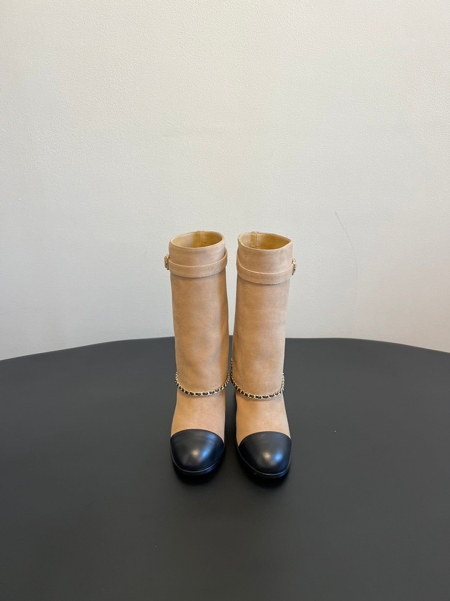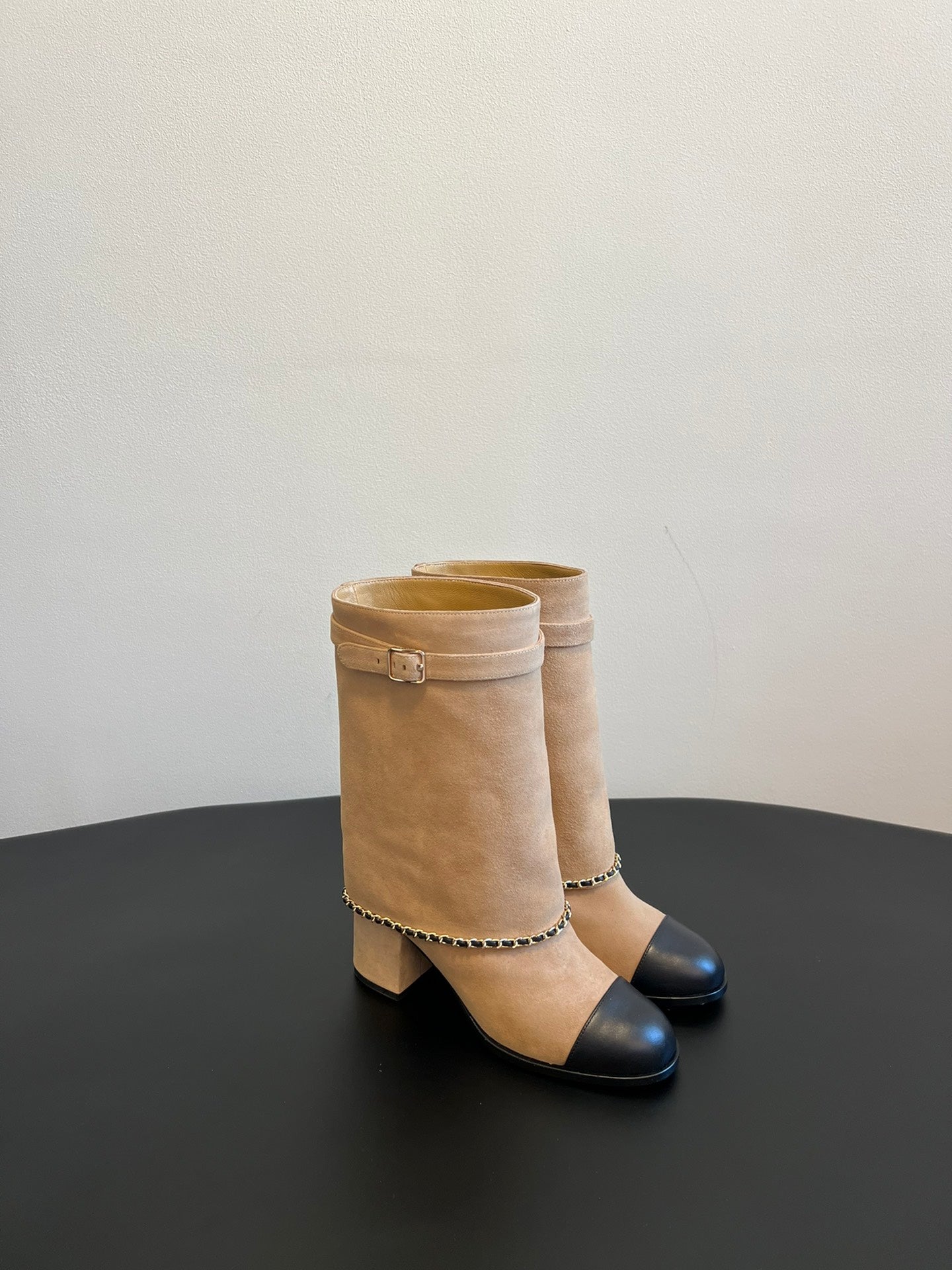 CC Short Boots Dark Beige With Chain Suede And Cowhide 944965