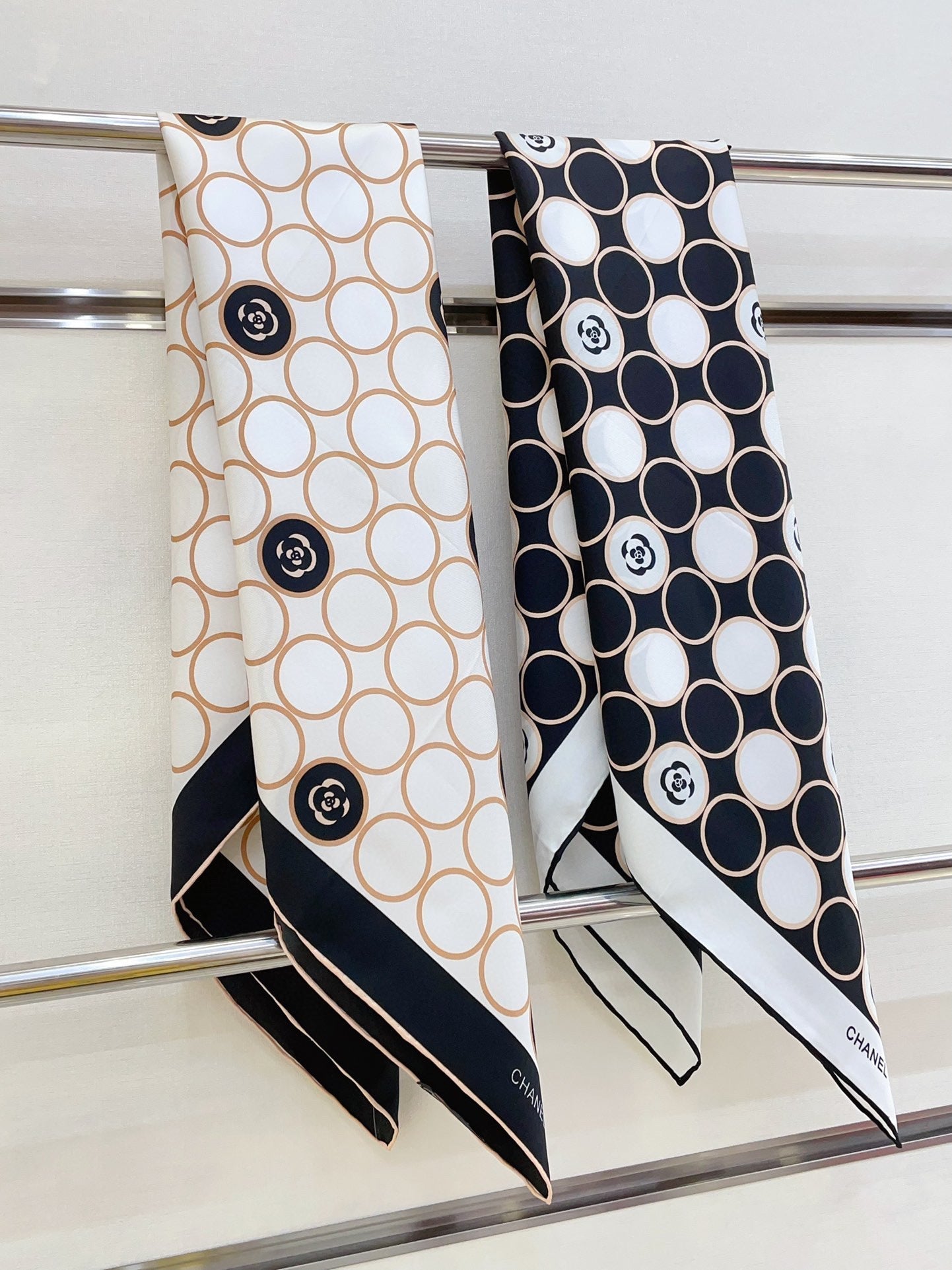 CC Square Scarf 90 CM In Black Mix White Silk Twill 350415