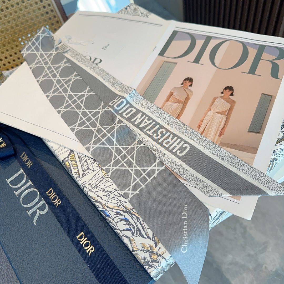 CC Twilly Mini Scarf 120cm Gray Mulberry Silk 945732