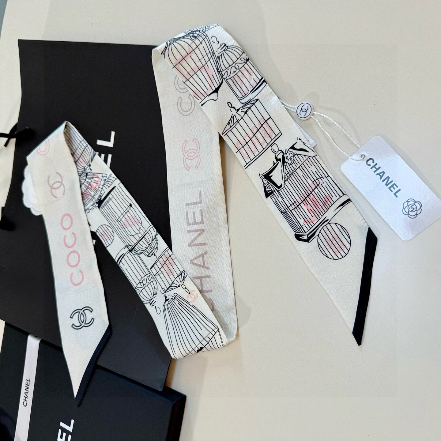 CC Twilly Mini Scarf 120cm White Mulberry Silk 929777