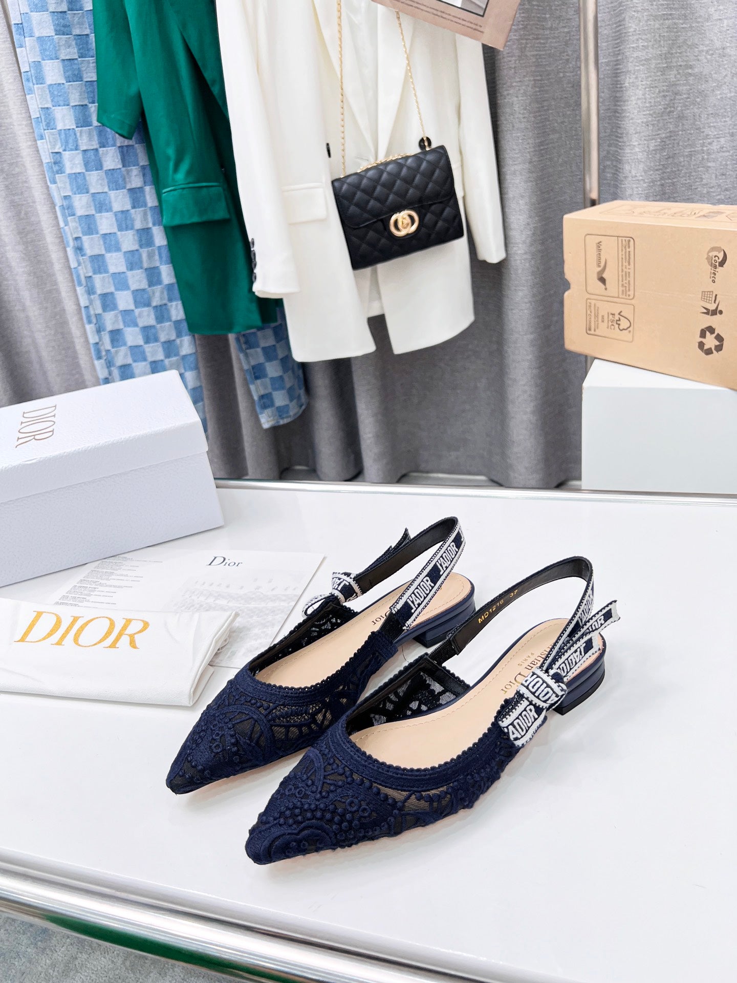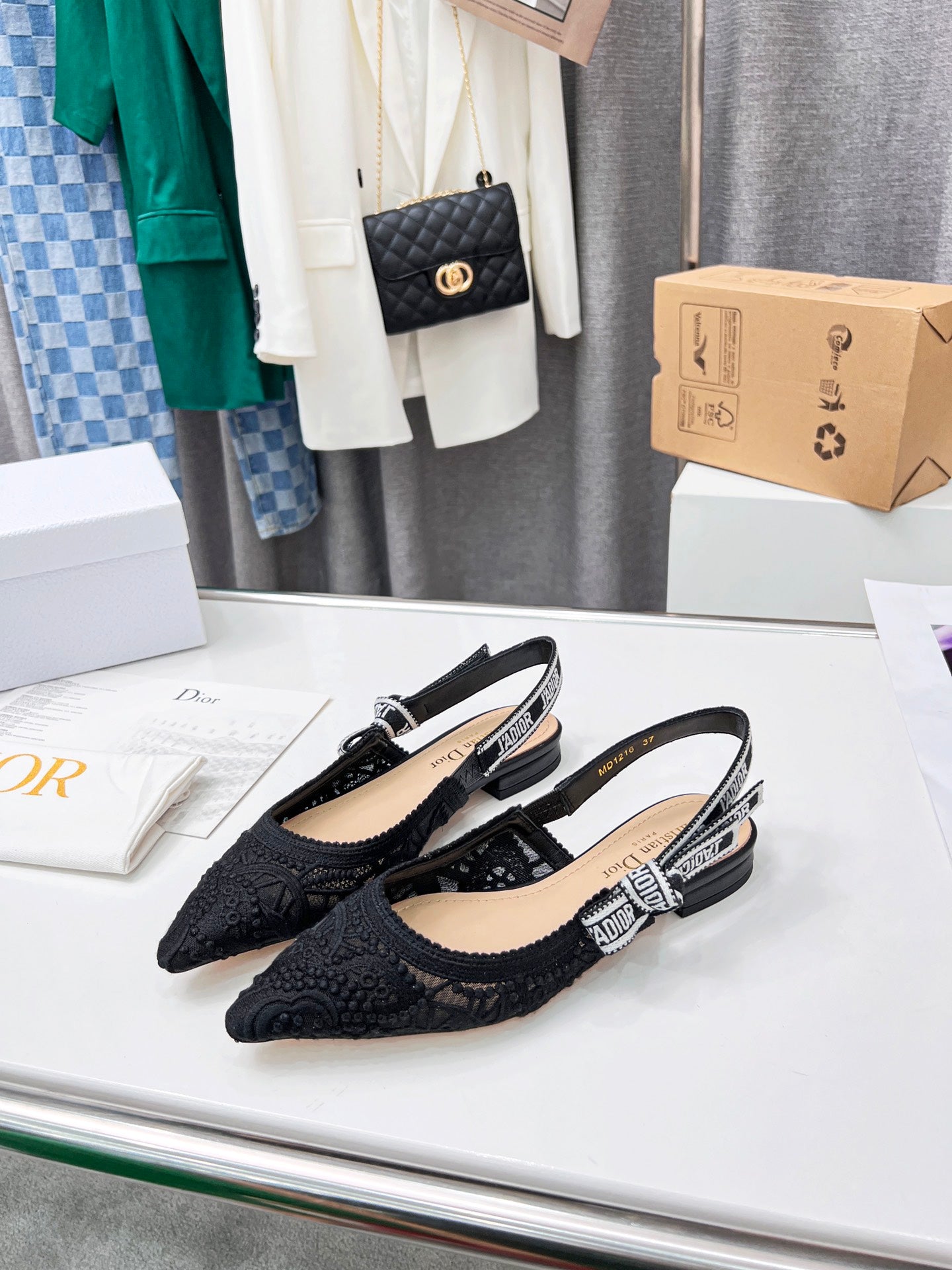 CD 25 J'Adior Slingback Flat Mesh Fabric 237966