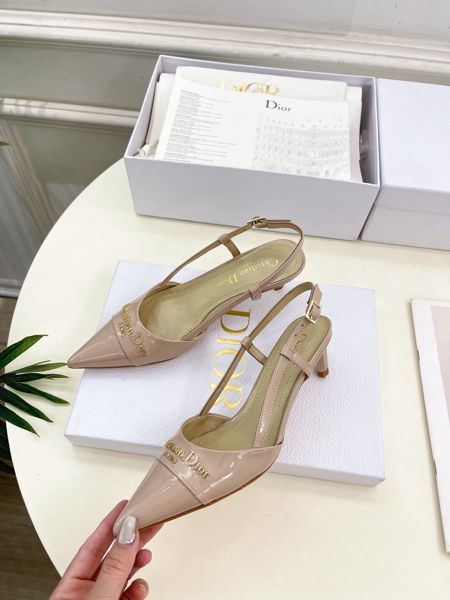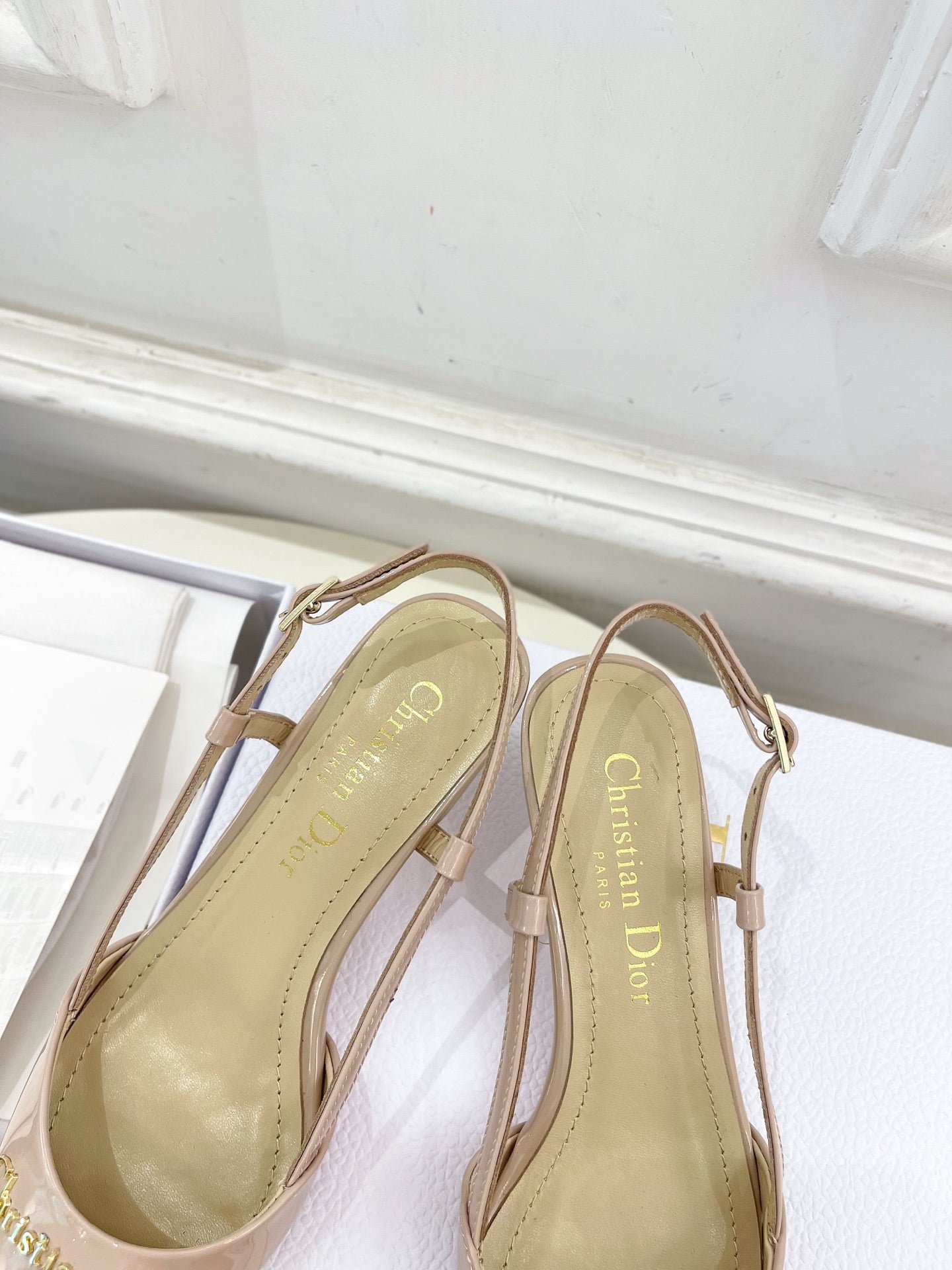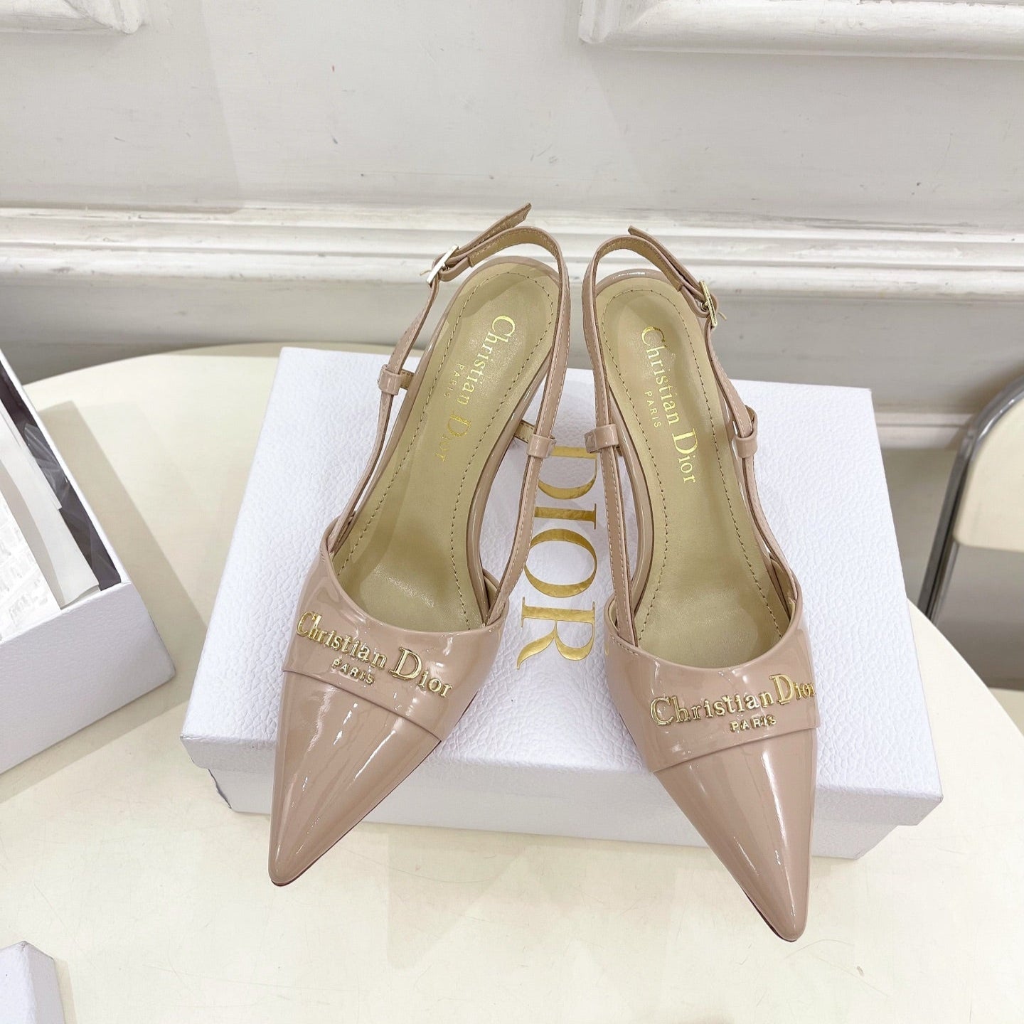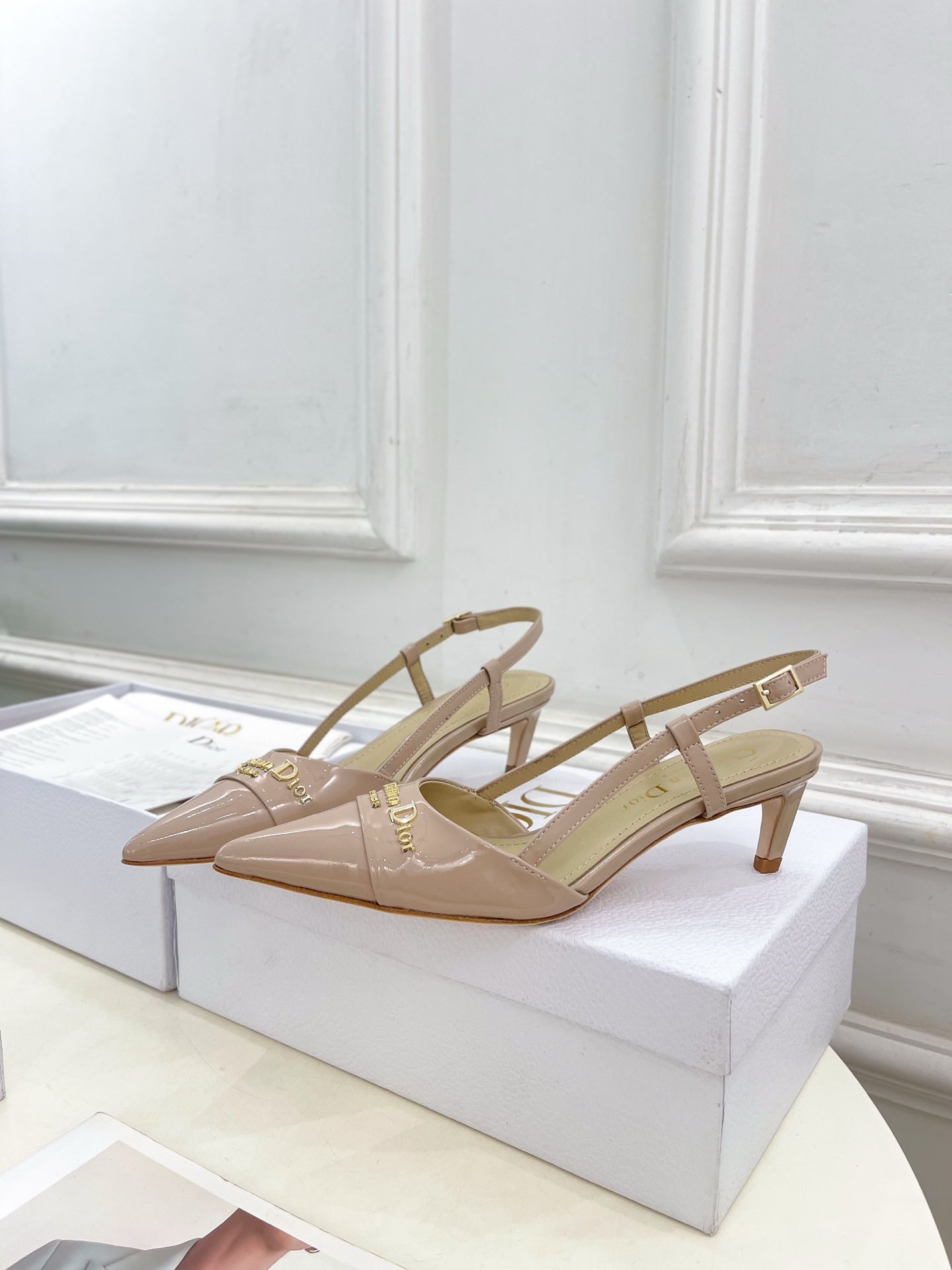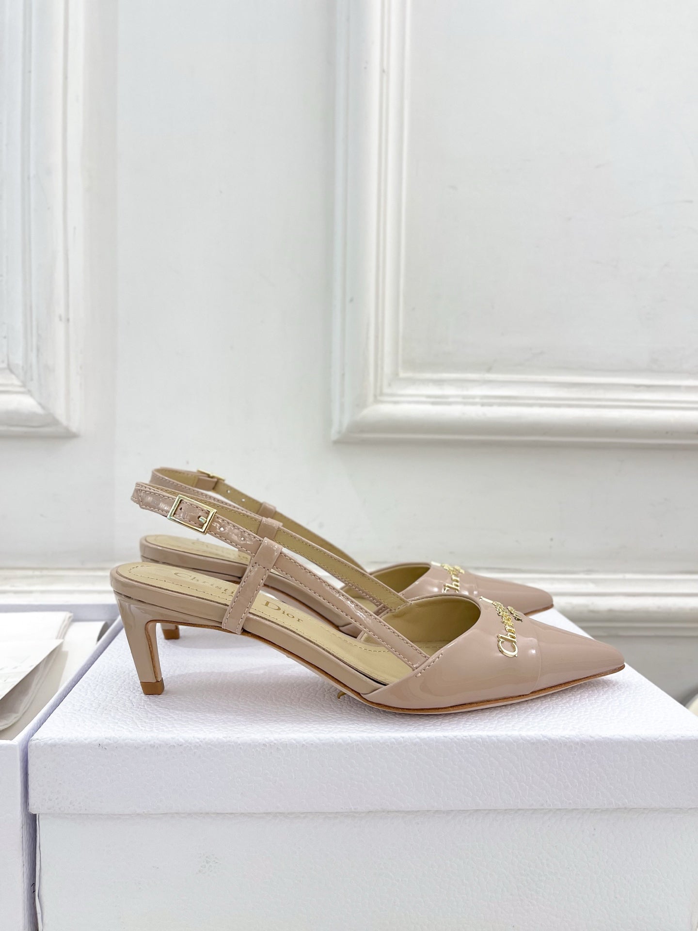 CD 25 Slingback Heel Pink Nude Patent Leather 307435