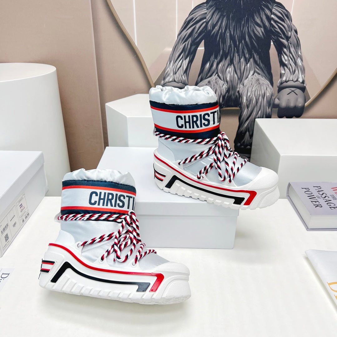 CD Snow Ankle Boots White Red Cowhide Nylon Fabric 539661