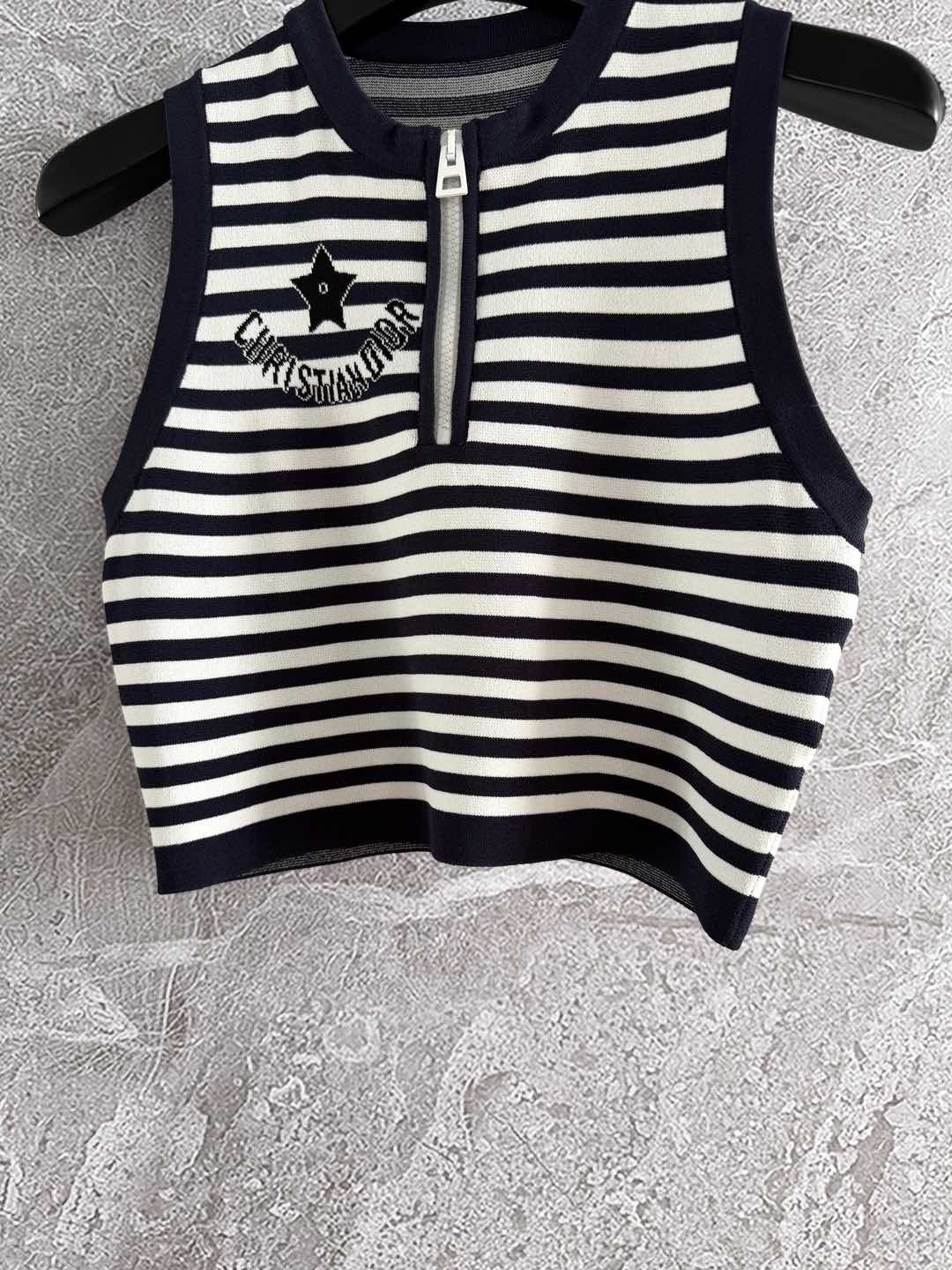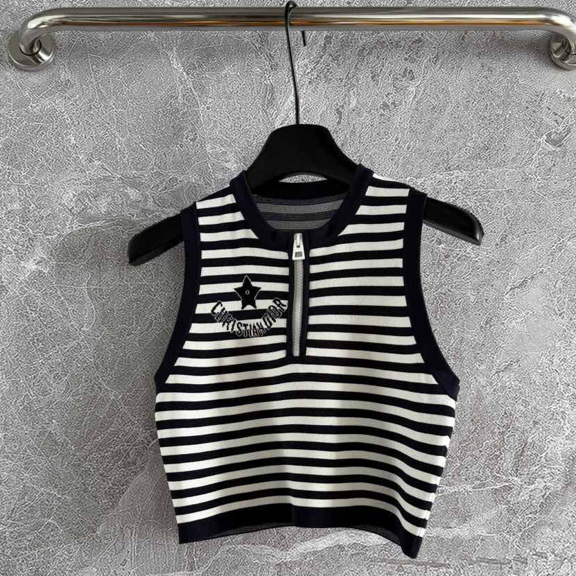 CD Striped High Waist Top Dark Blue White Viscose