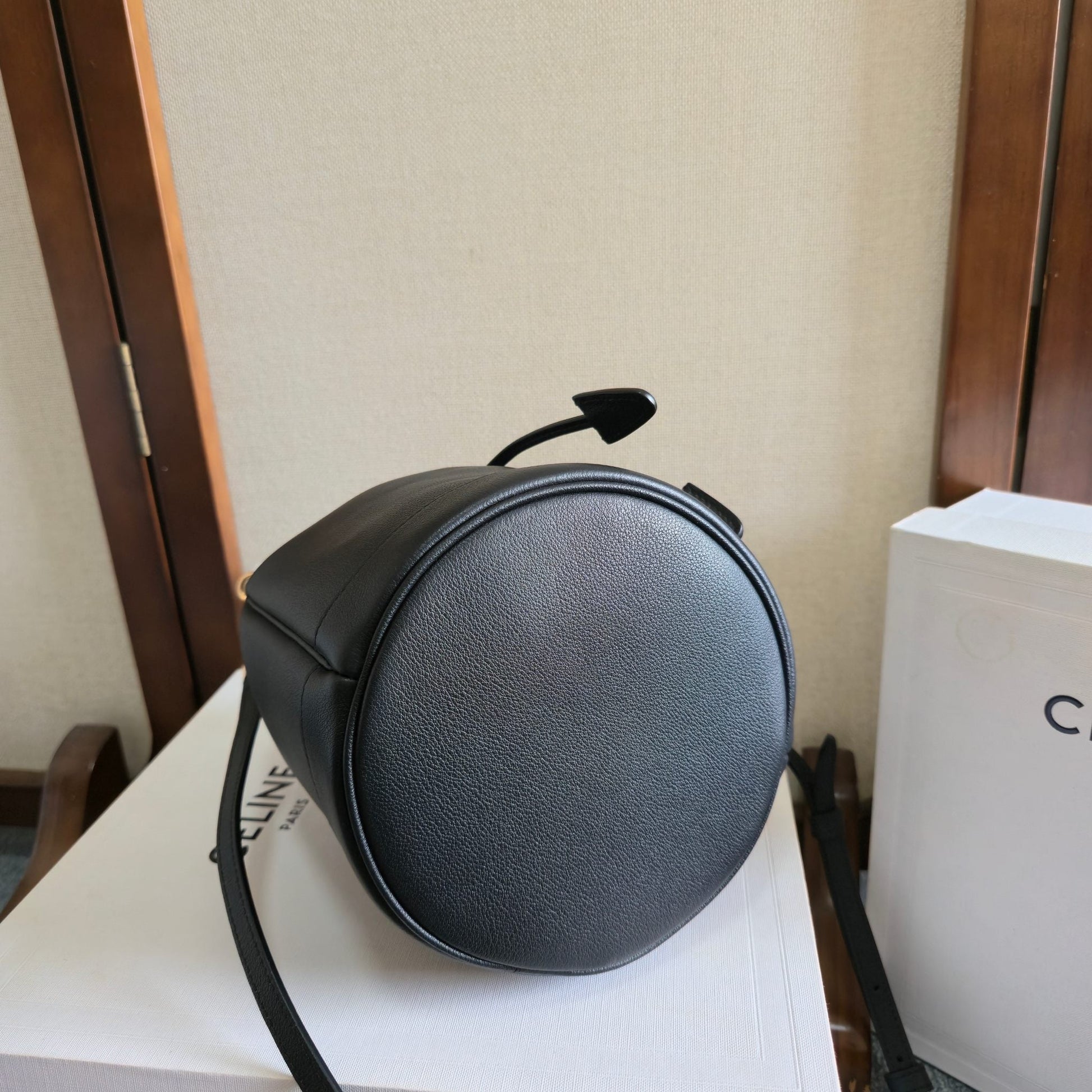 Celine 2025 Teen Clara Bucket Bag 19cm Black Calfskin 276317