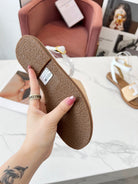Celine 25C Lympia Sandal Beige mix White Fabric with Calfskin 238161