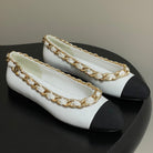 Chanel 25A Ballet Flats Big Chain Double C White Black Sheepskin 393819