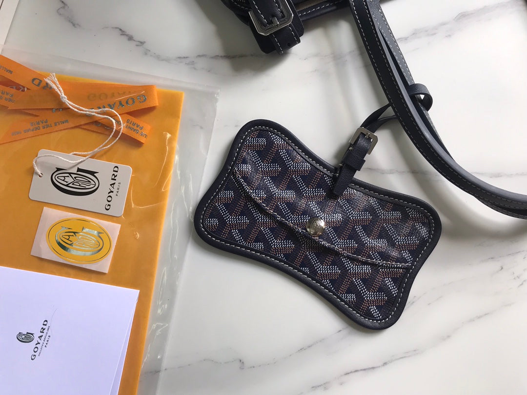 CHIEN GRIS BAG 33 IN NAVY BLUE GOYARDINE CANVAS AND TAN CALFSKIN TRIM