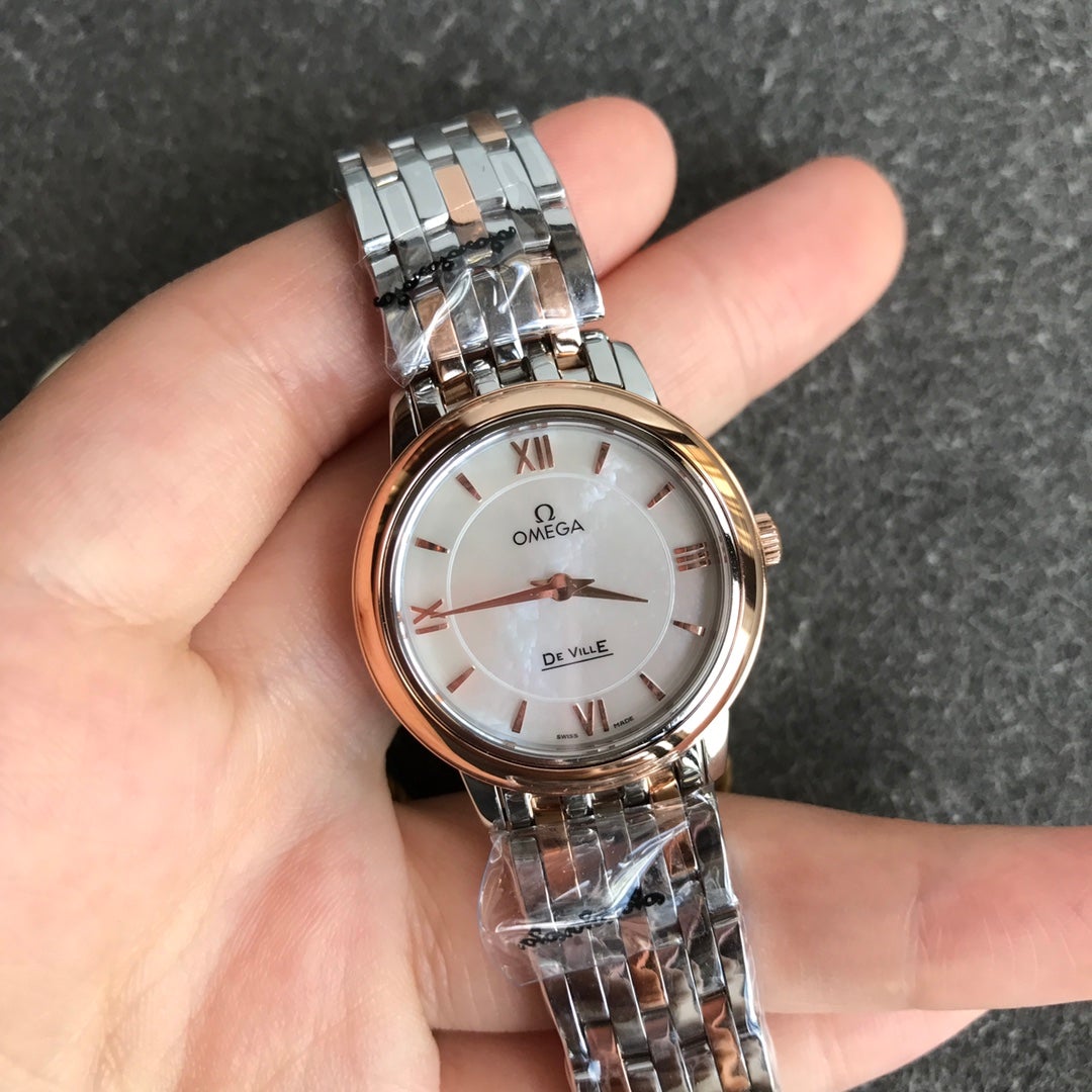 DEVILLE PRESTIGE 27MM QUARTZ ROSE GOLD STEEL MOP DIAL