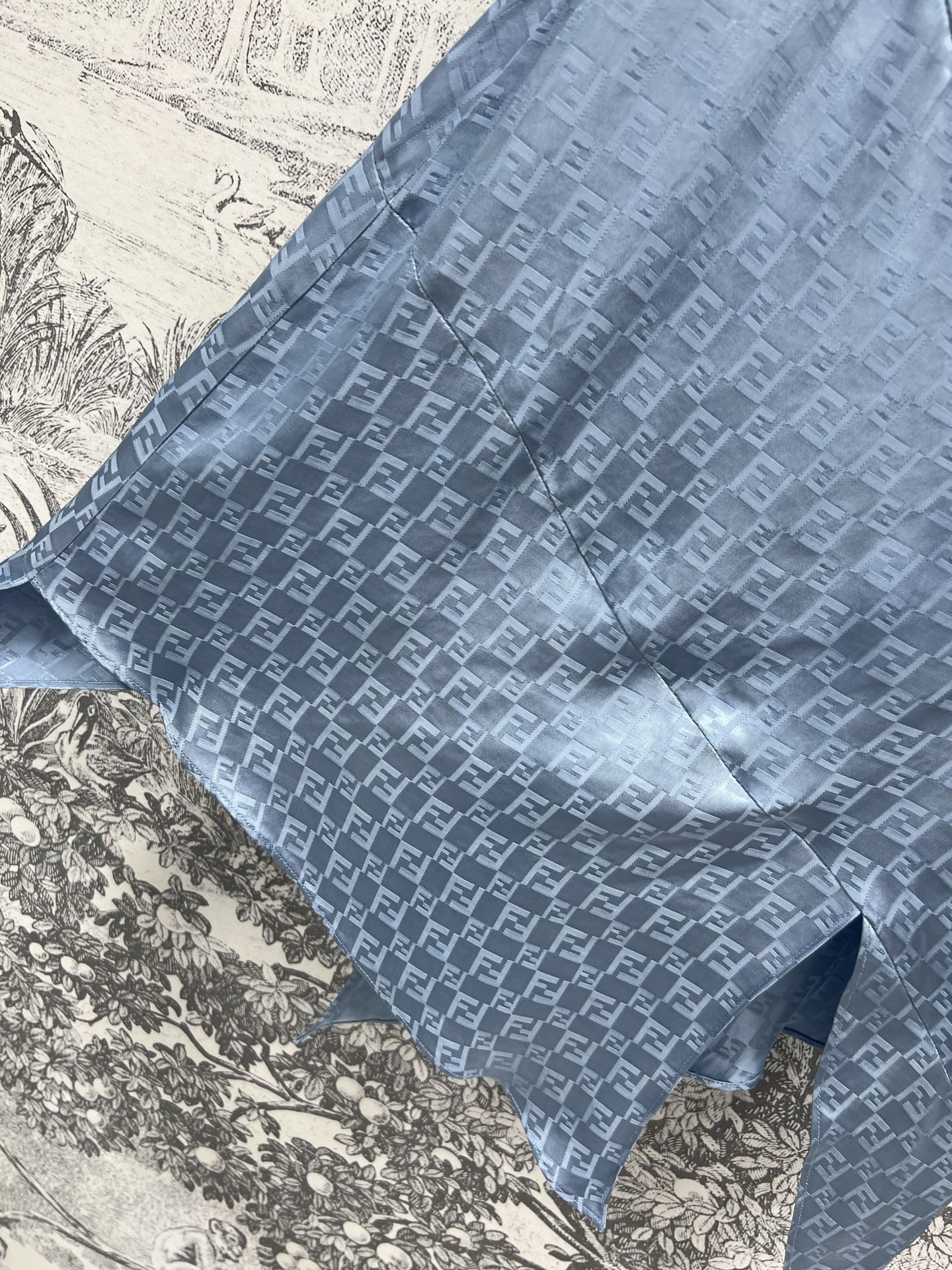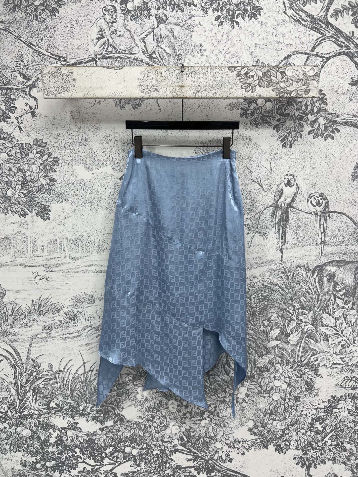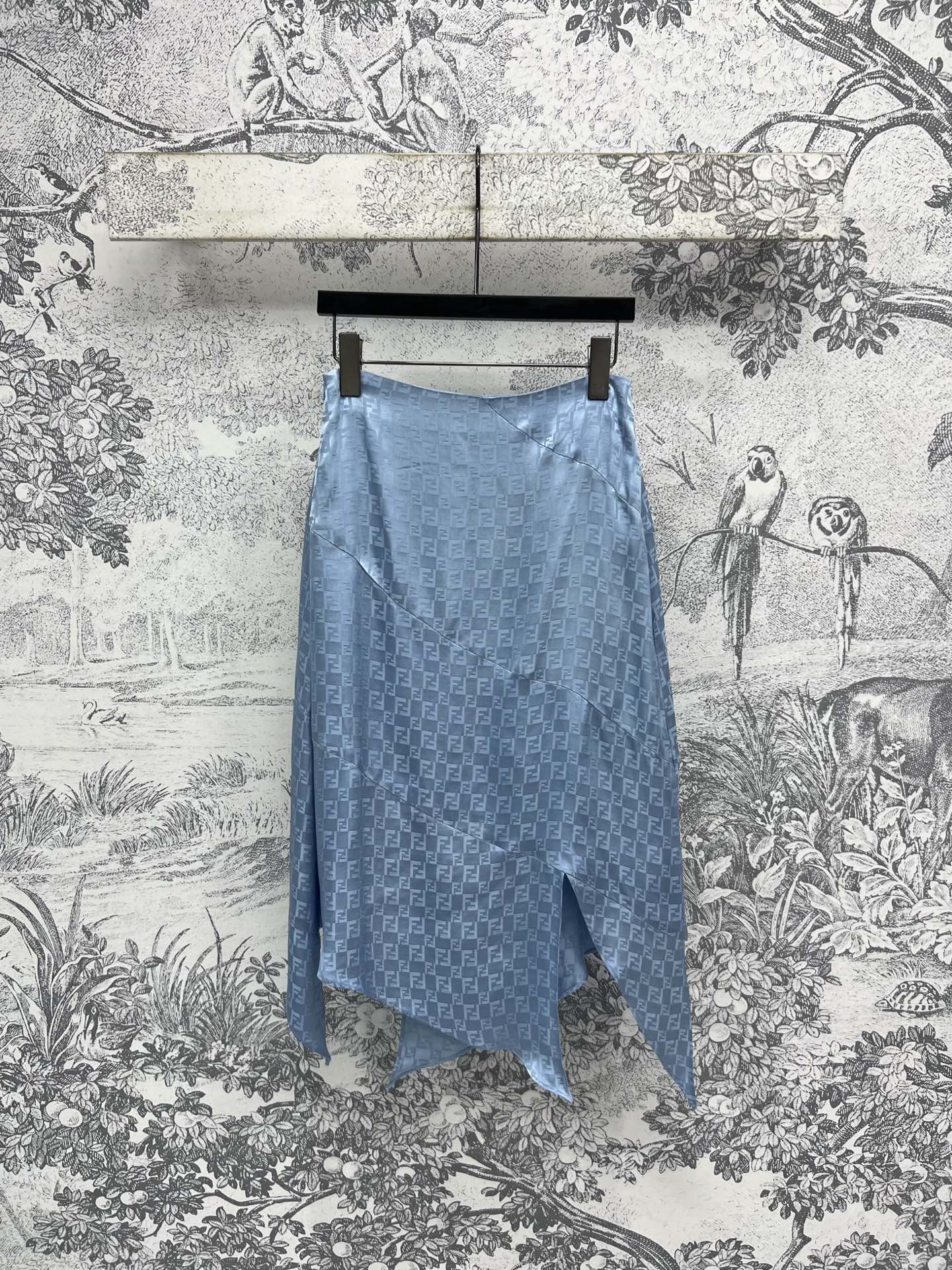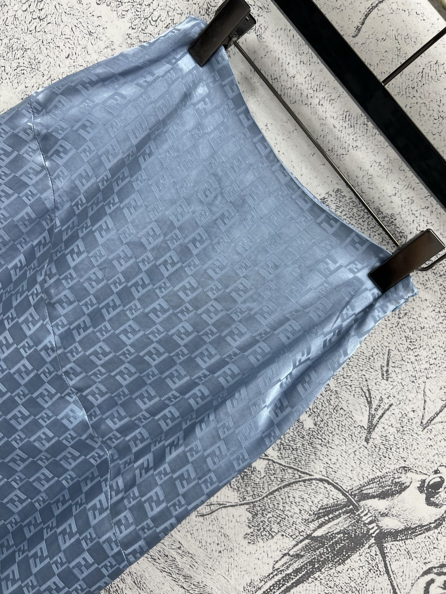 Fendi 25 Double F Irregular Skirt Blue Viscose Polyester