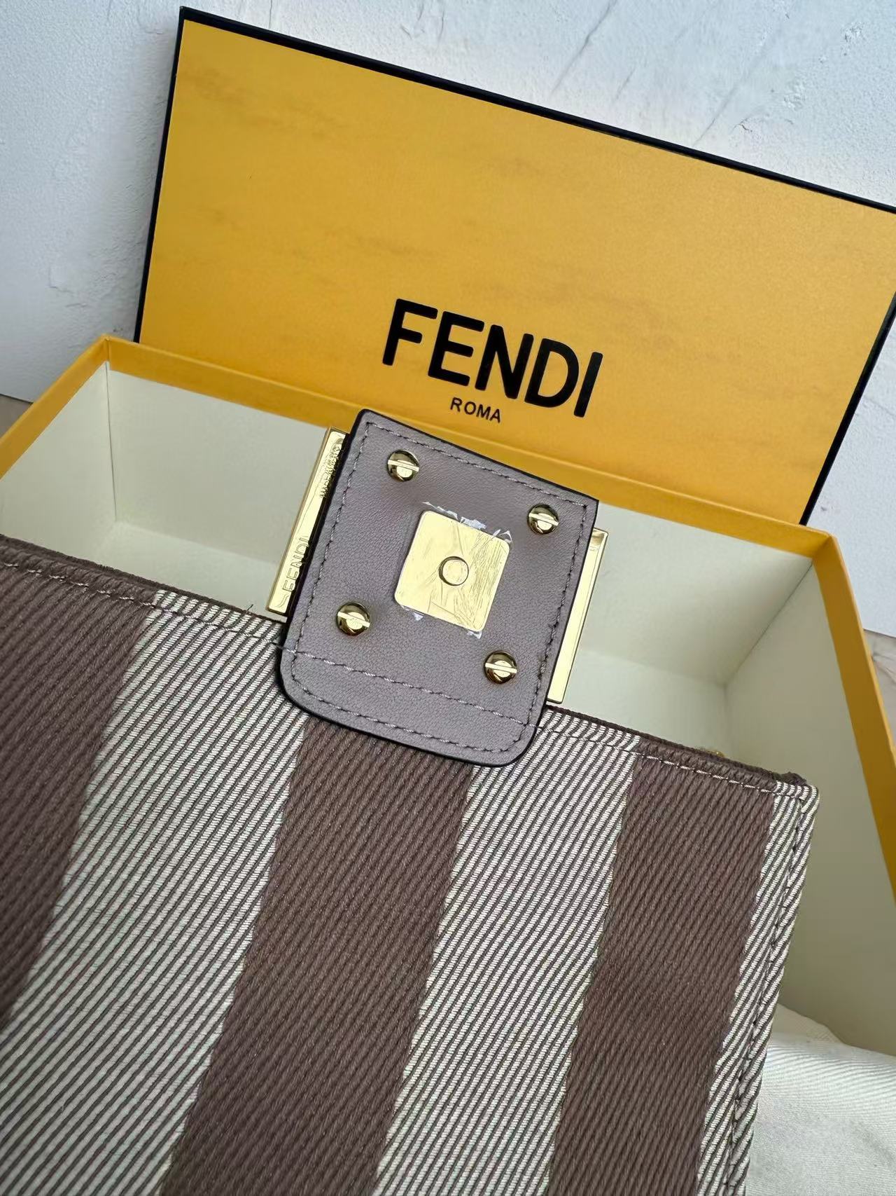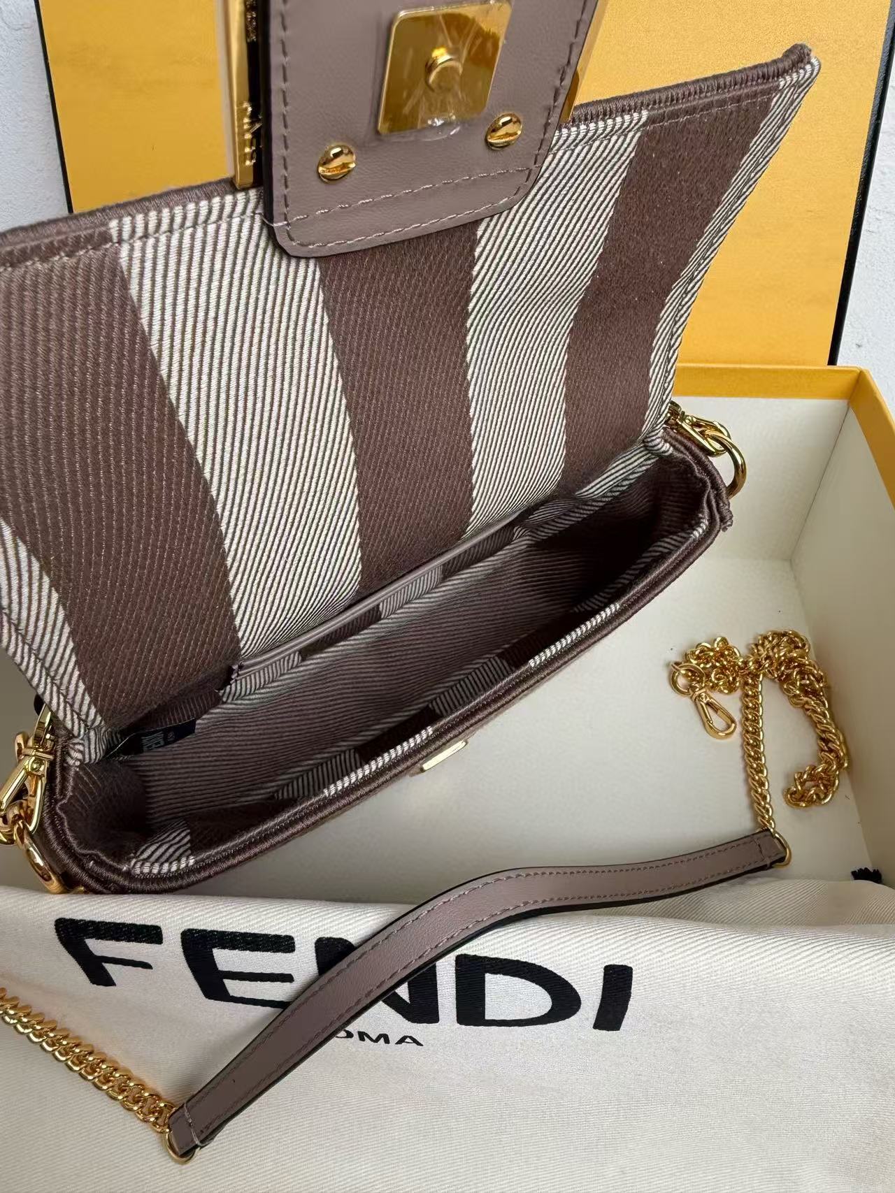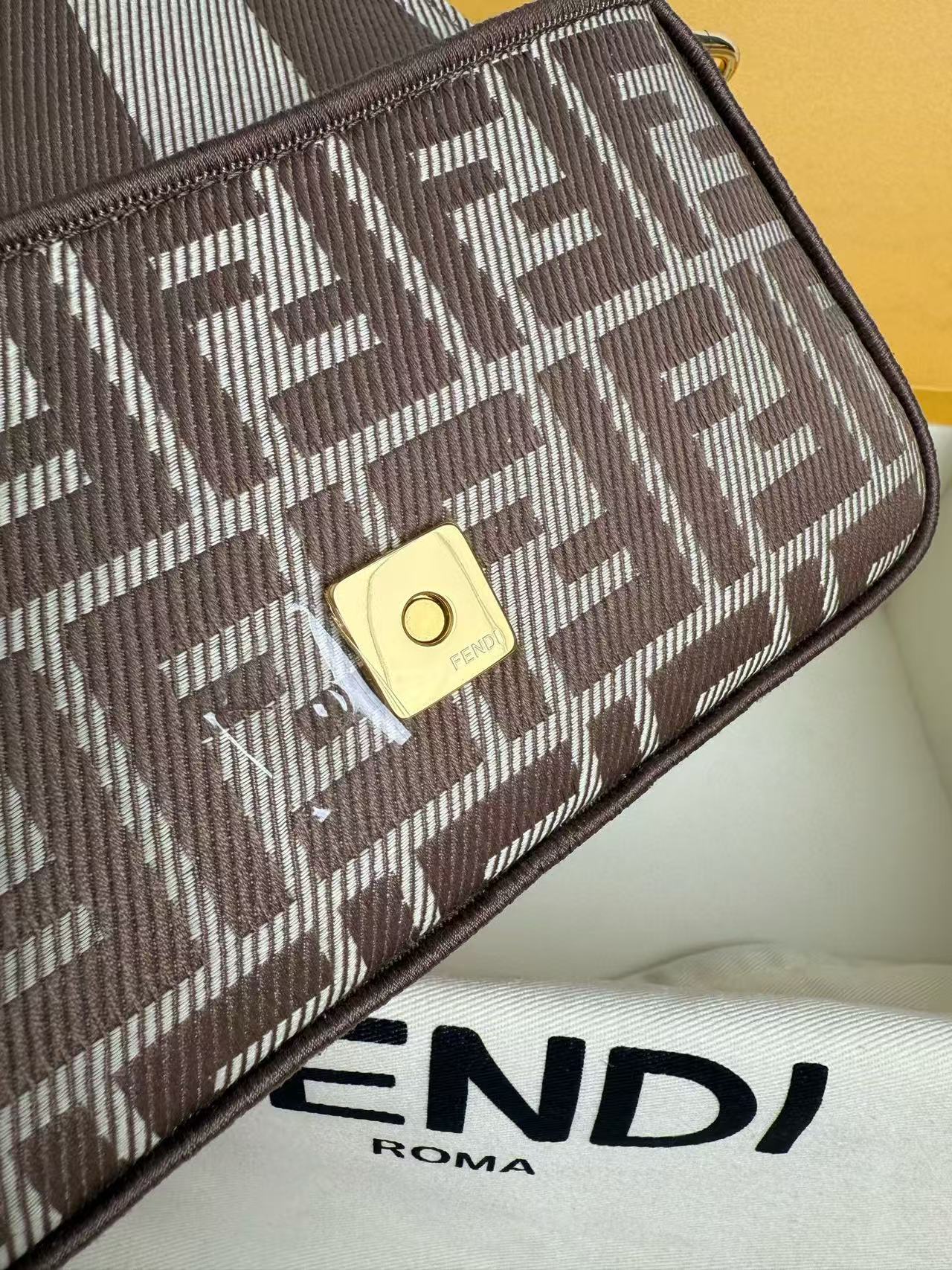 Fendi Baguette FF Bag Brown Jacquard Fabric