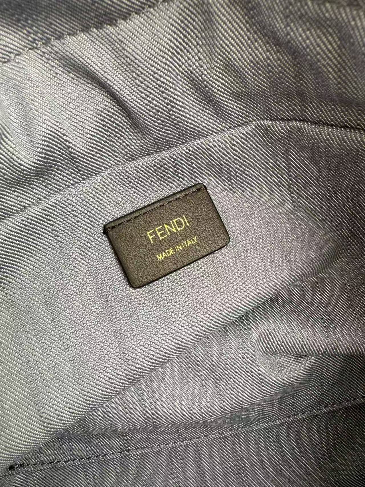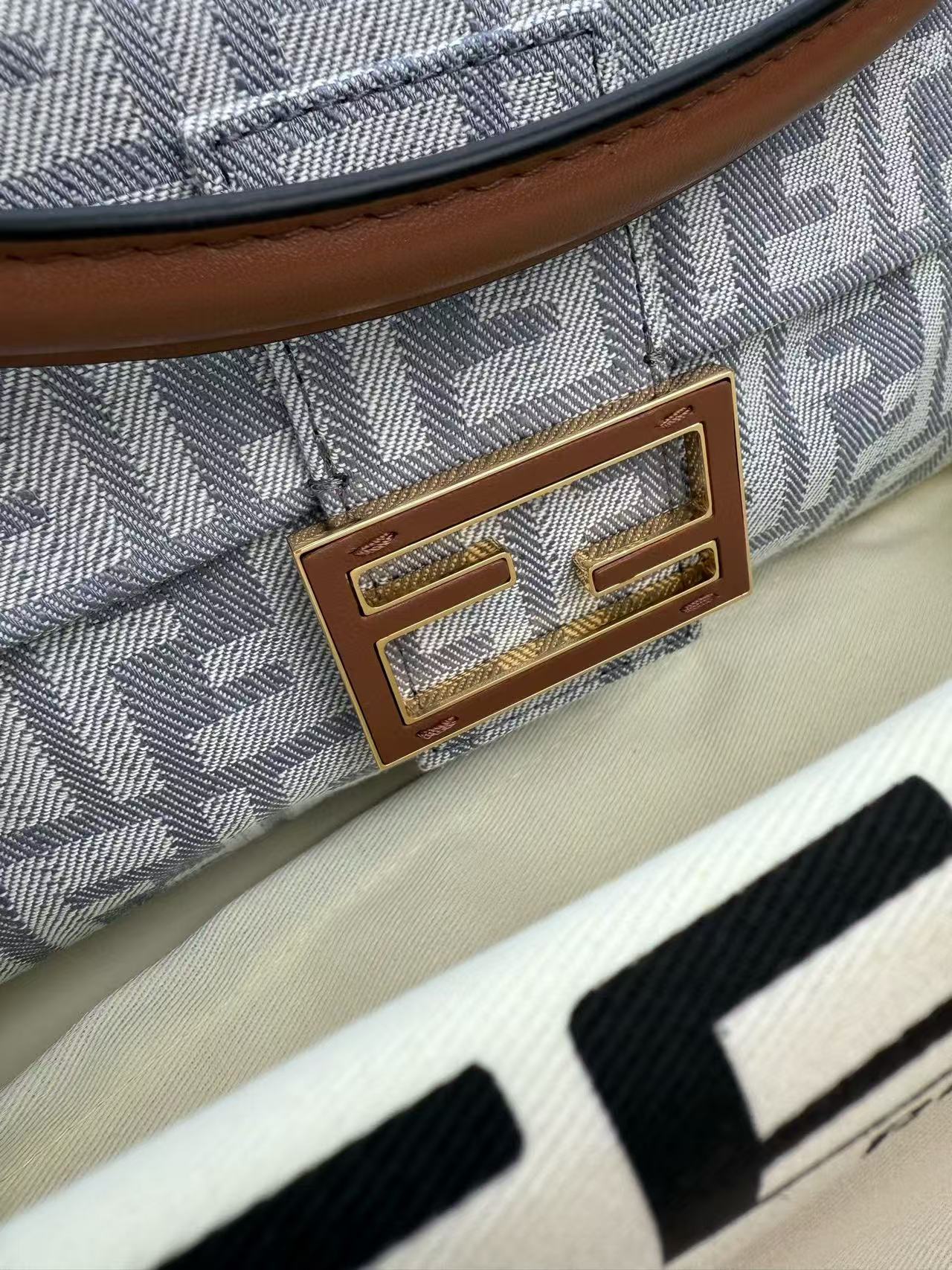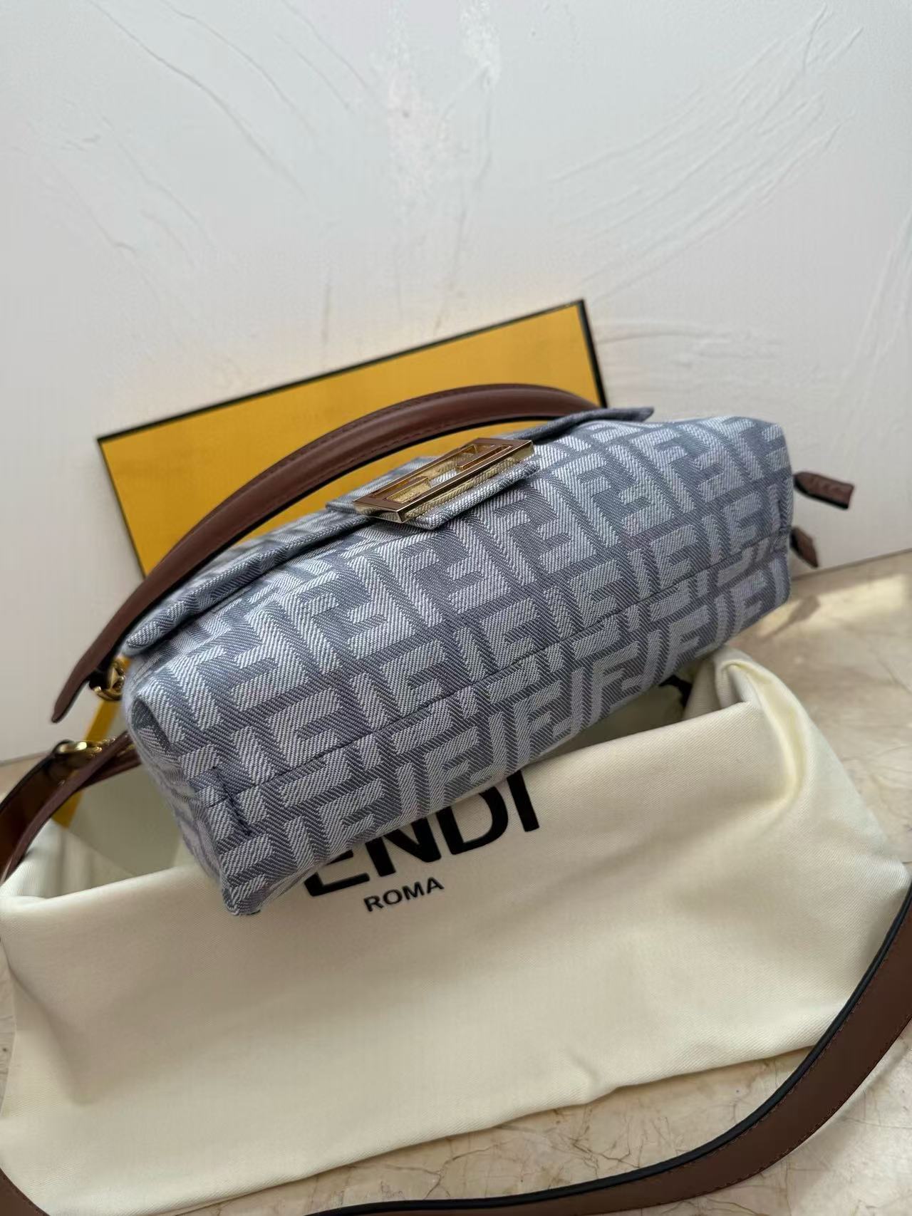 Fendi Mamma Baguette Drawstring Shoulder Bag Blue Brown Denim Fabric Leather