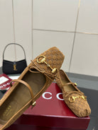GC 25 Horsebit Ballet Flat Dark Brown Monogram Suede