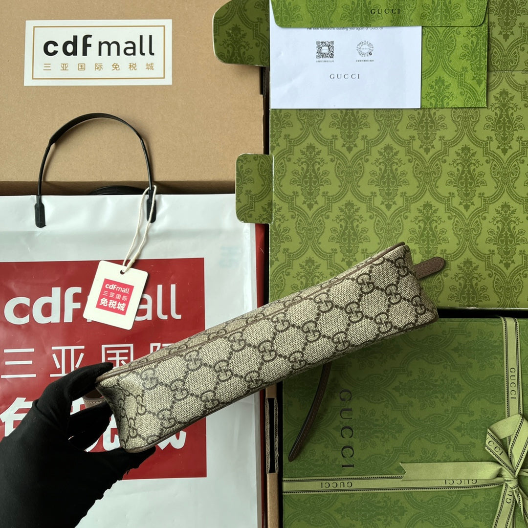 GG Ophidia Small Shoulder Bag 21cm Beige Dark Brown Canvas