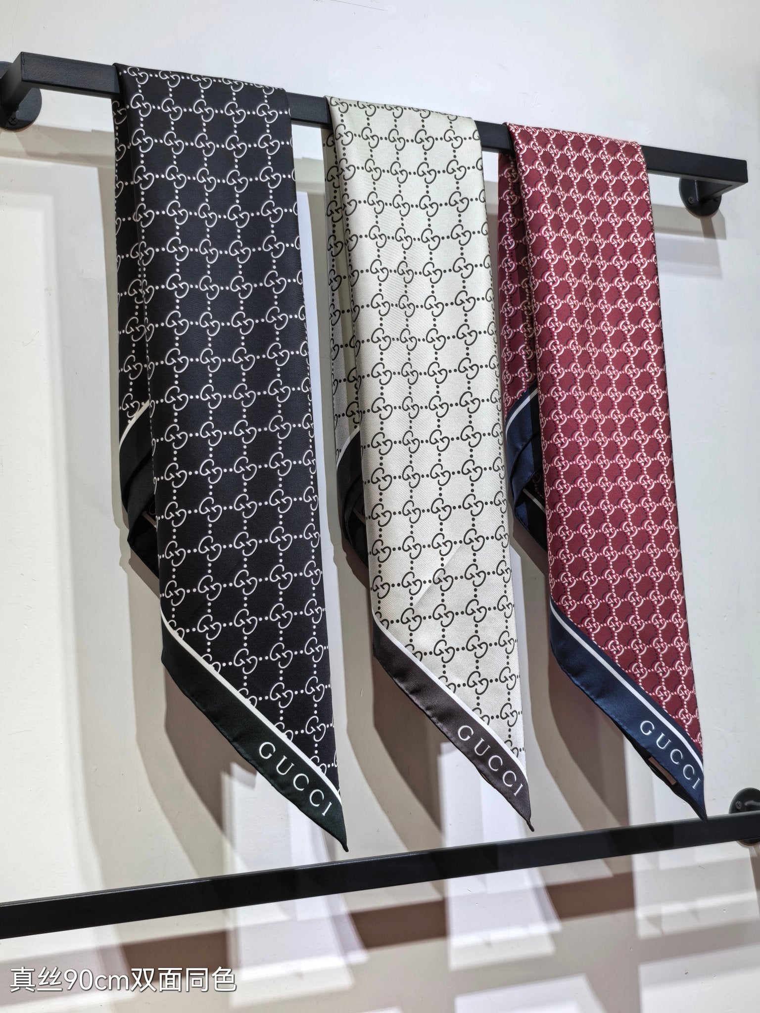 GG Scarf 90CM Burgundy Blue Twill Silk 293045