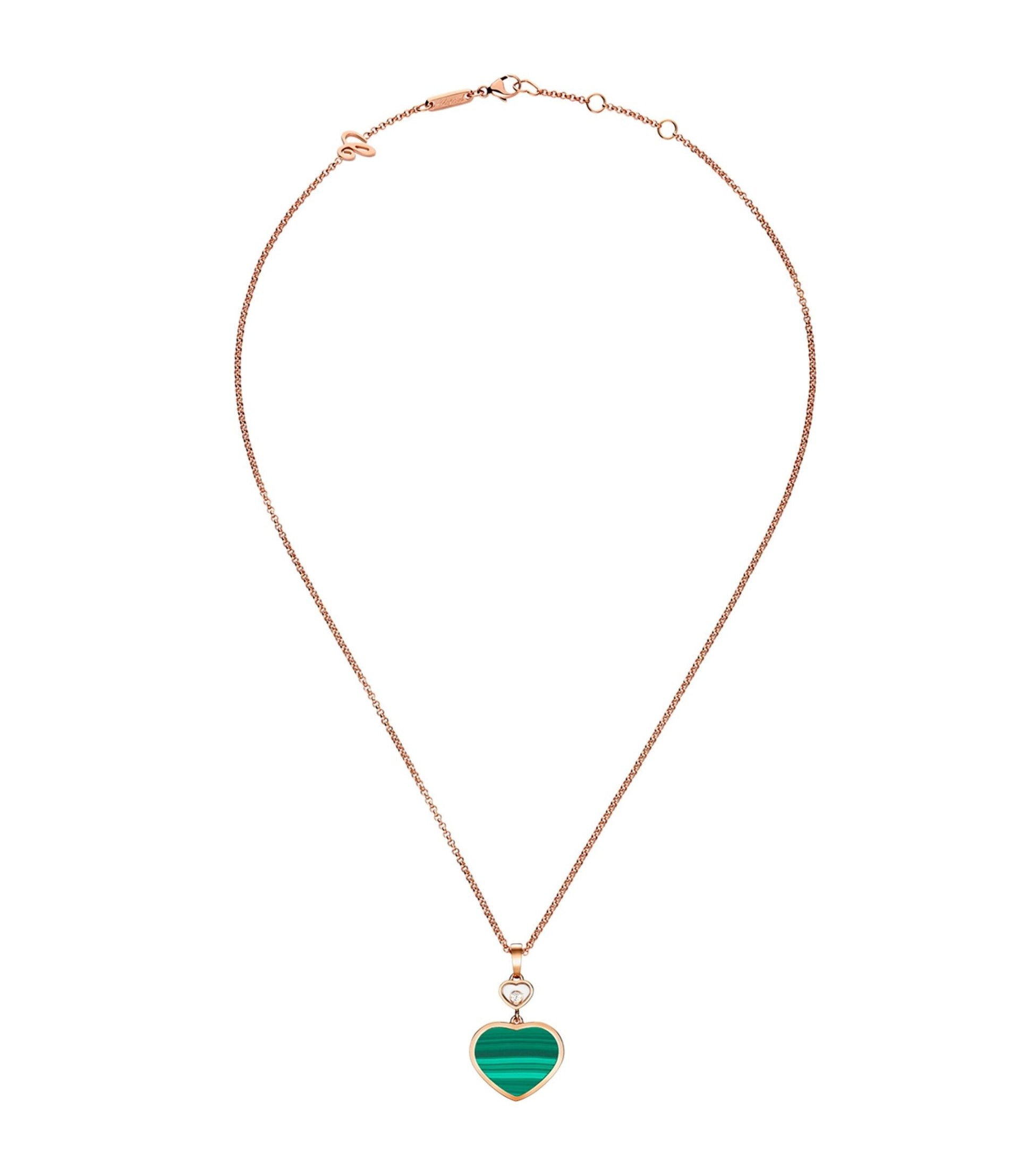 HAPPY HEART MALACHITE NECKLACE PINK GOLD DIAMOND