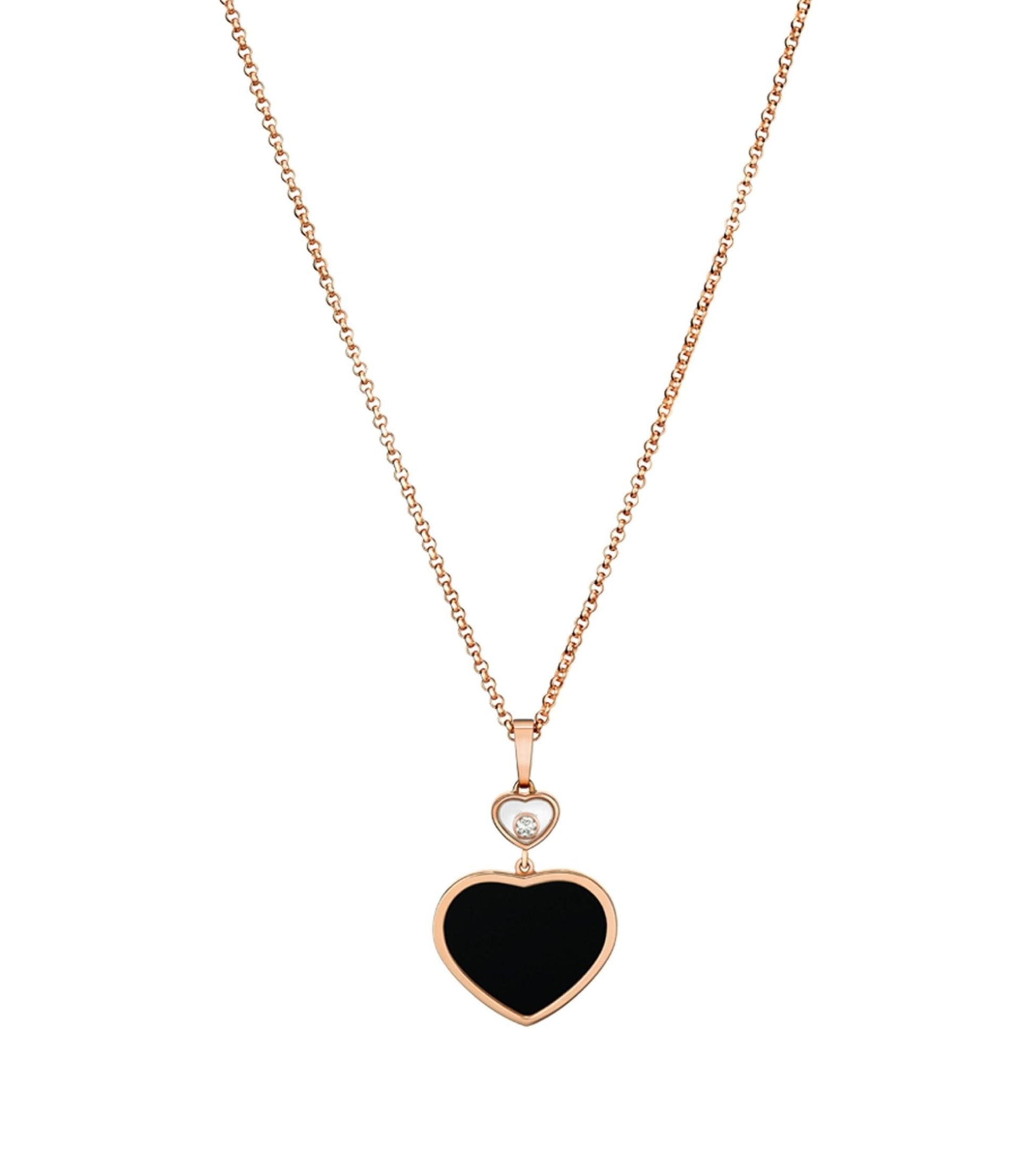 HAPPY HEART ONYX NECKLACE PINK GOLD DIAMOND