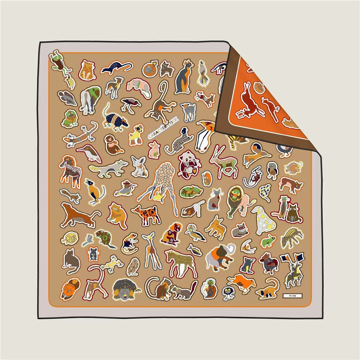 Hermes Caracteristick 90 Double-sided Square Orange silk