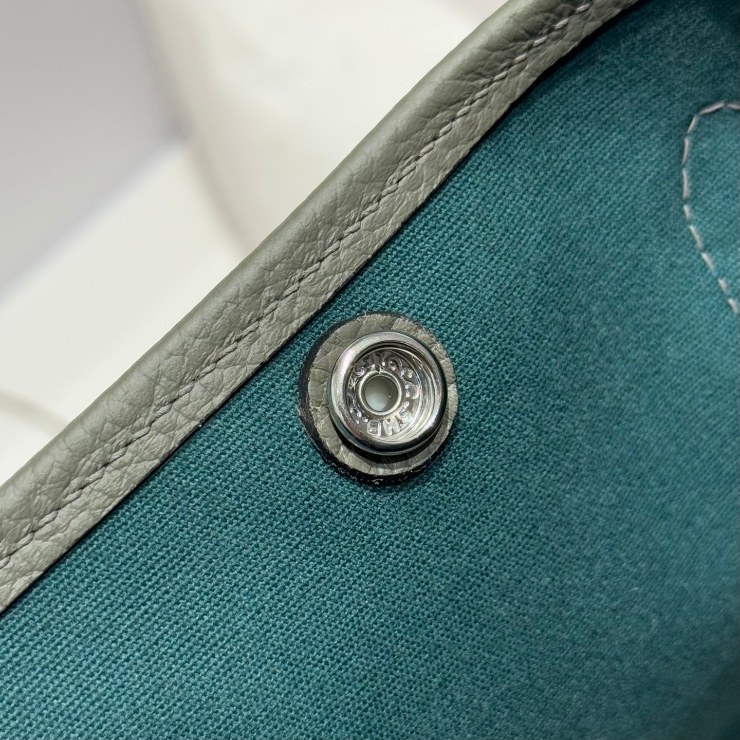 HM Garden Party 30cm Bag Vert Amande Togo Beige Canvas
