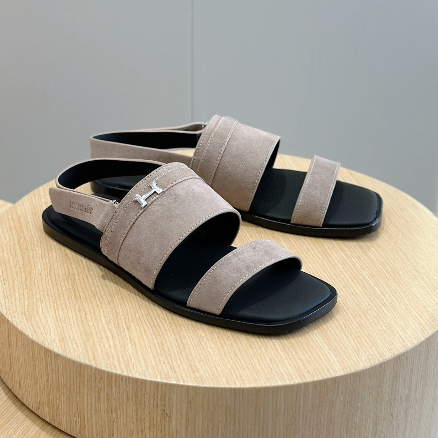 HM HENRIO FLAT SANDAL LIGHT GRAY SUEDE