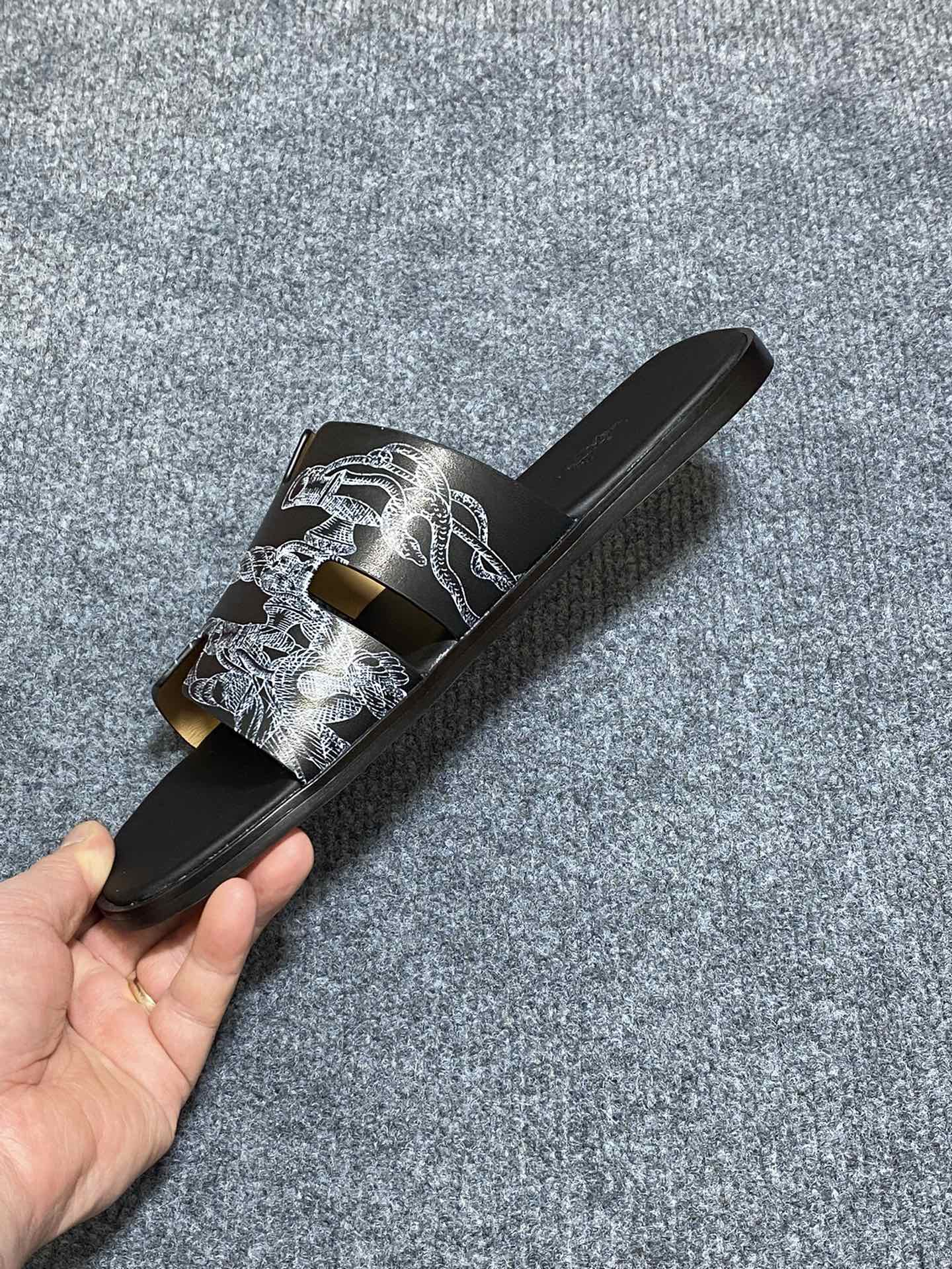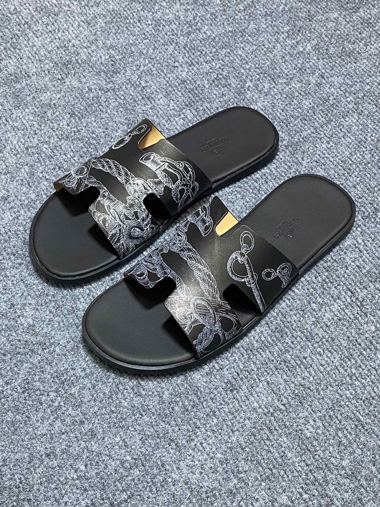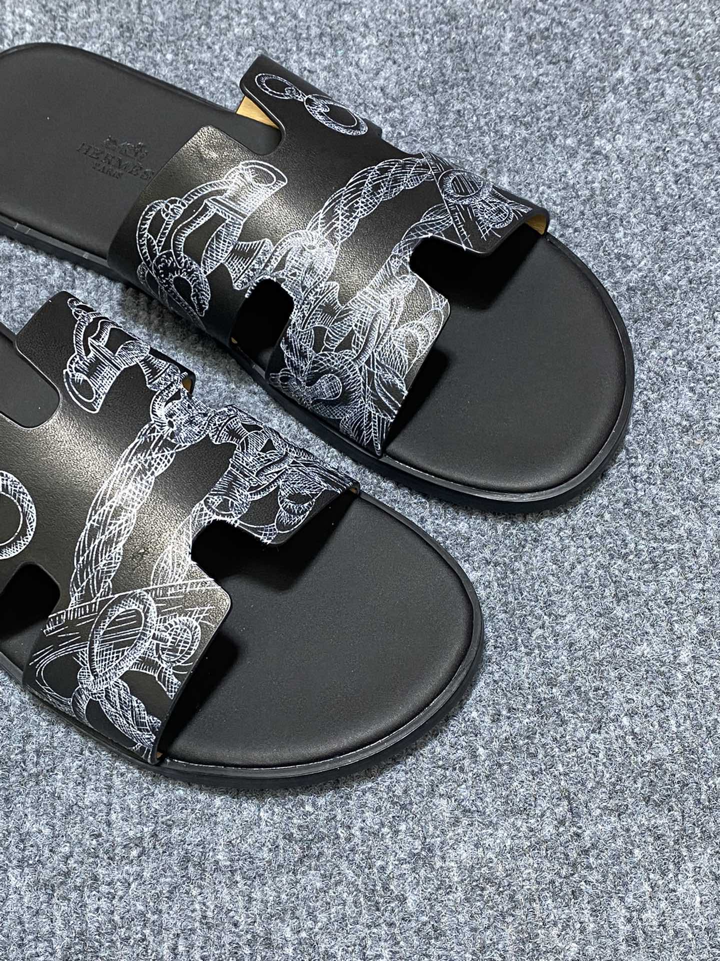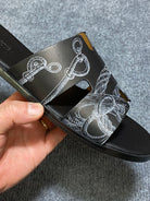 HM IZMIR SANDAL BLACK CALFSKIN WITH PATTERNS