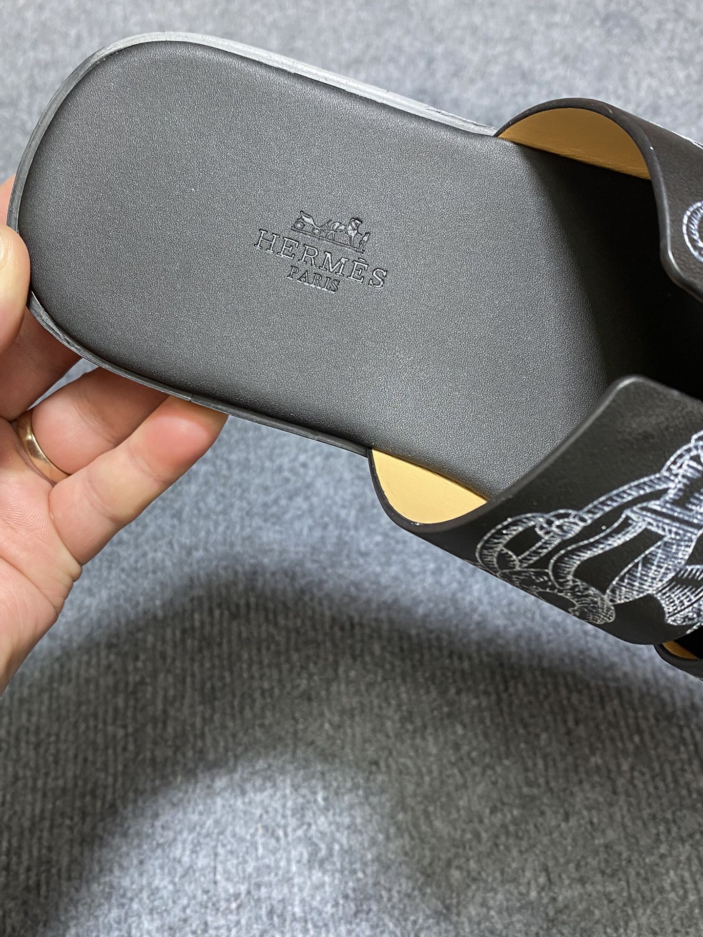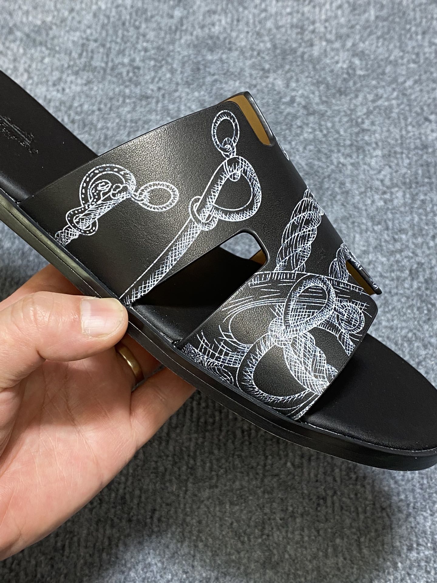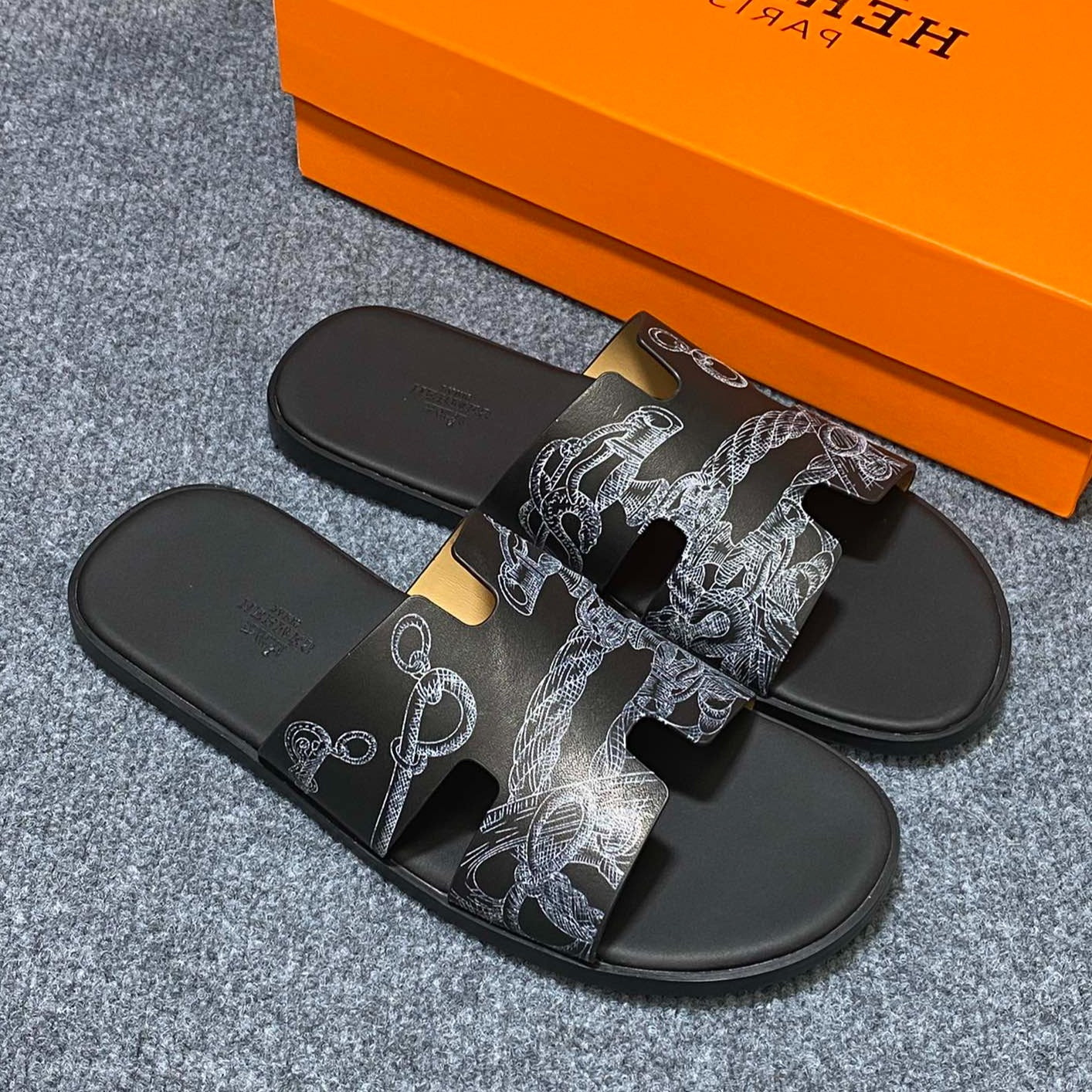 HM IZMIR SANDAL BLACK CALFSKIN WITH PATTERNS