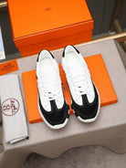HM Men's Bouncing Sneakers White Black Sheepskin Suede 664381