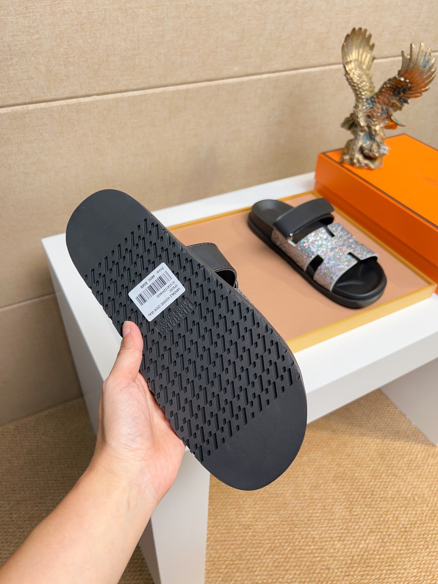 HM Men's Chypre Sandals Silver Diamond Calfskin 735677