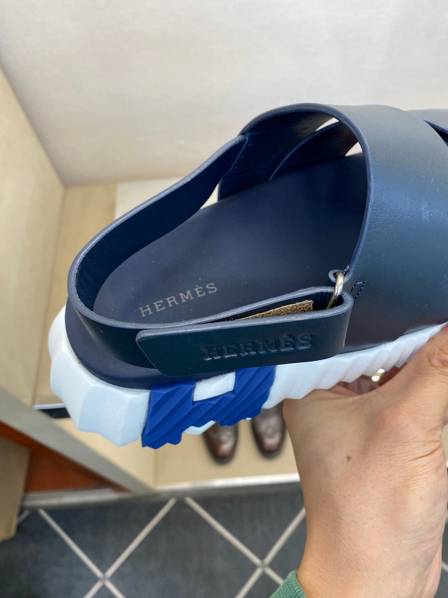 HM Men's Electric Sandals Navy Blue Calfskin 602594