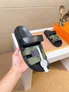 HM Men's Izmir Slide Green Black Calfskin 747627