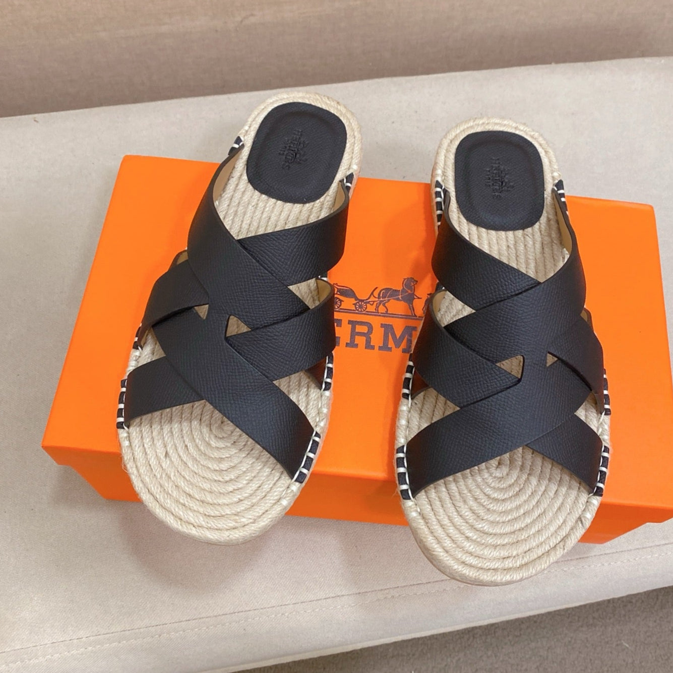 HM Men's Kazimir Sandal Black Espadrilles Cowhide 700886